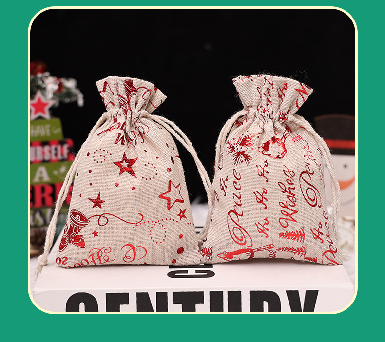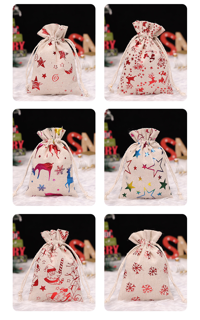 - ["Made of cotton and linen fabric","Comes with a drawstring closure","Perfect for gift, candy and treats","Suitable for Christmas decoration","Vivid plaid pattern"]