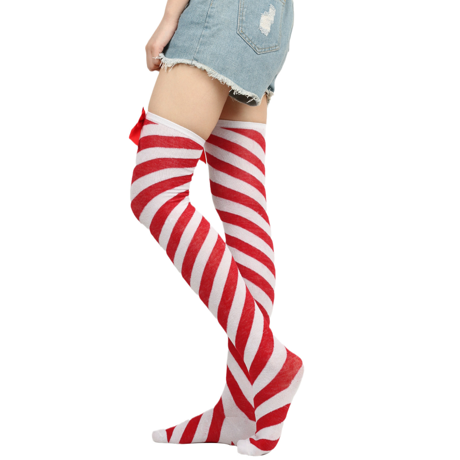 Women's Red Striped Christmas Long Socks Over Knee Candy Socks