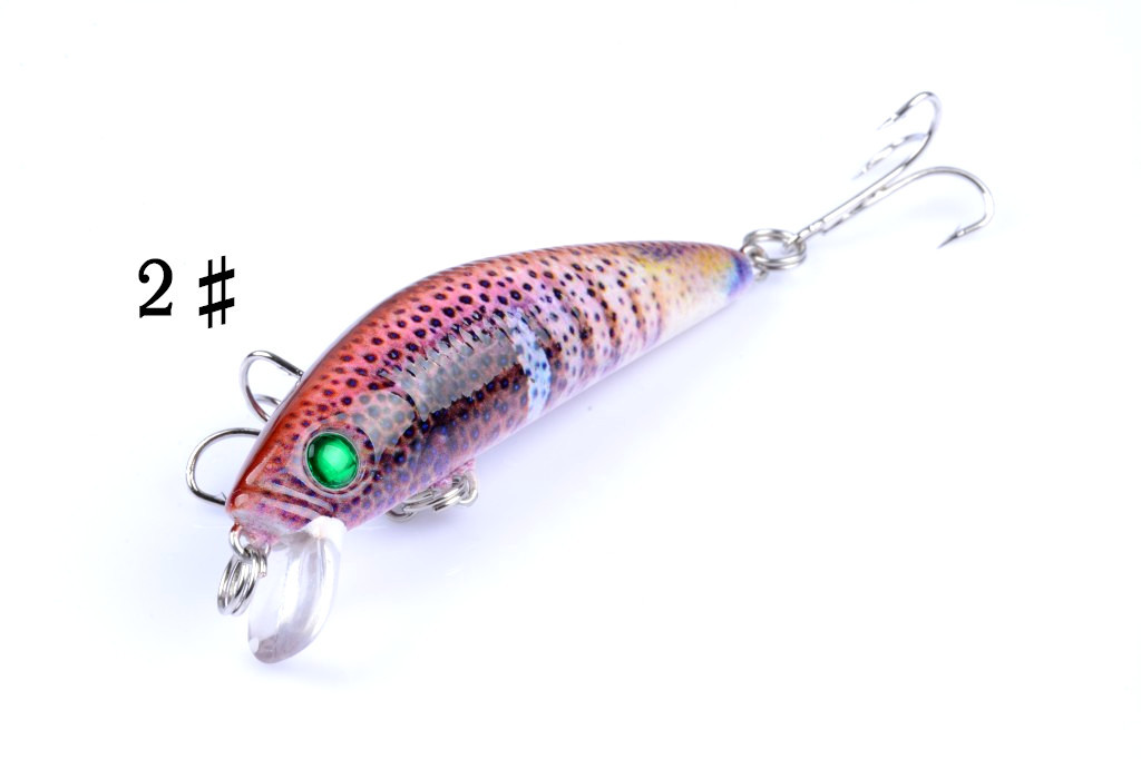 - ["High quality plastic material for long-term use","Bright colors to attract more fish","Mimic fish design to increase the success rate of fishing","Realistic 3D eyes to make it look more alive","Lightweight design for easy carrying"]