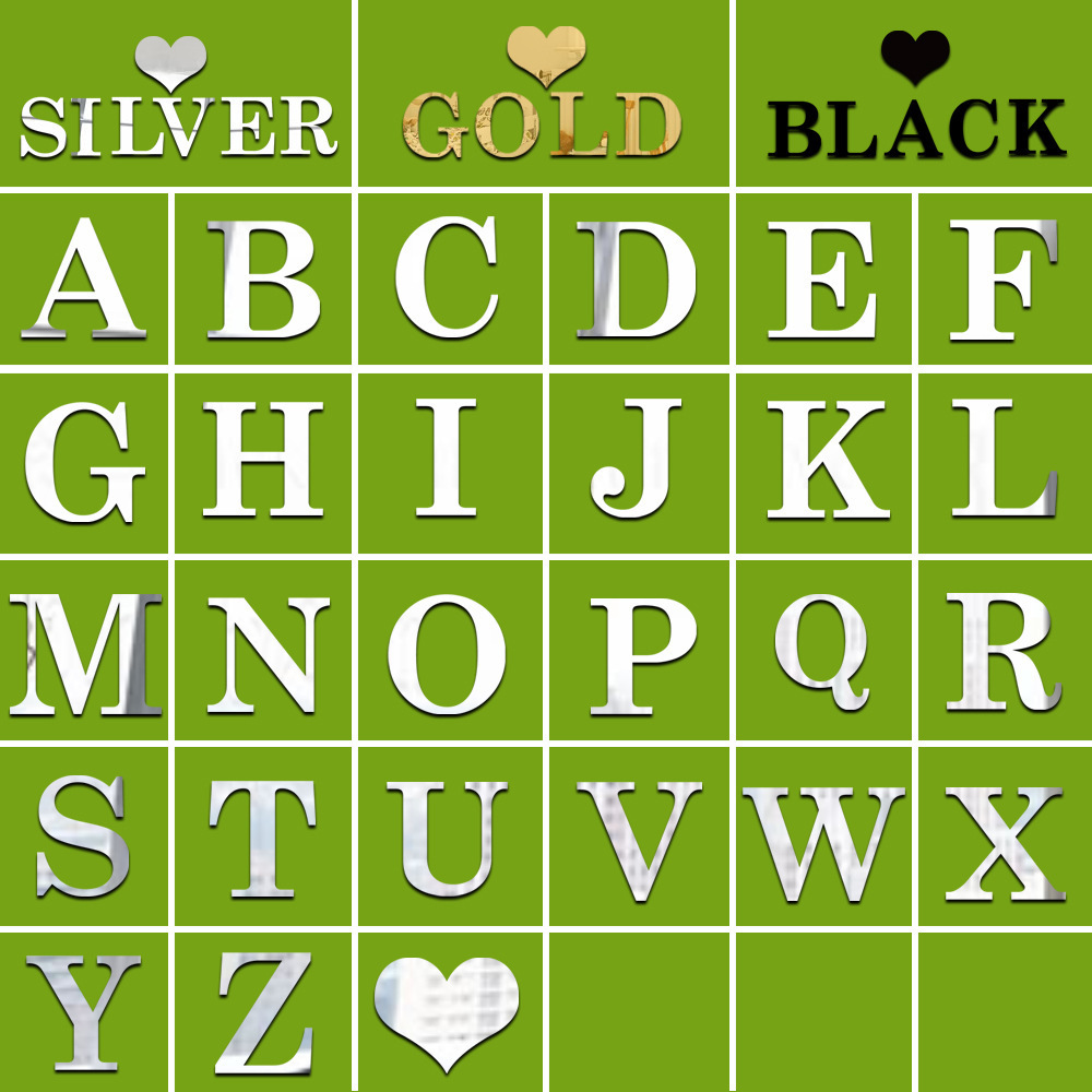 - ["DIY 26 Alphabet Wall Stickers with Acrylic Material and Silver Color","Self-Adhesive Design and Self-Embossing Method","Silver, Gold, and Black Color Options","New Chinese Style and Creative Design","Easy to Install and Remove"]
