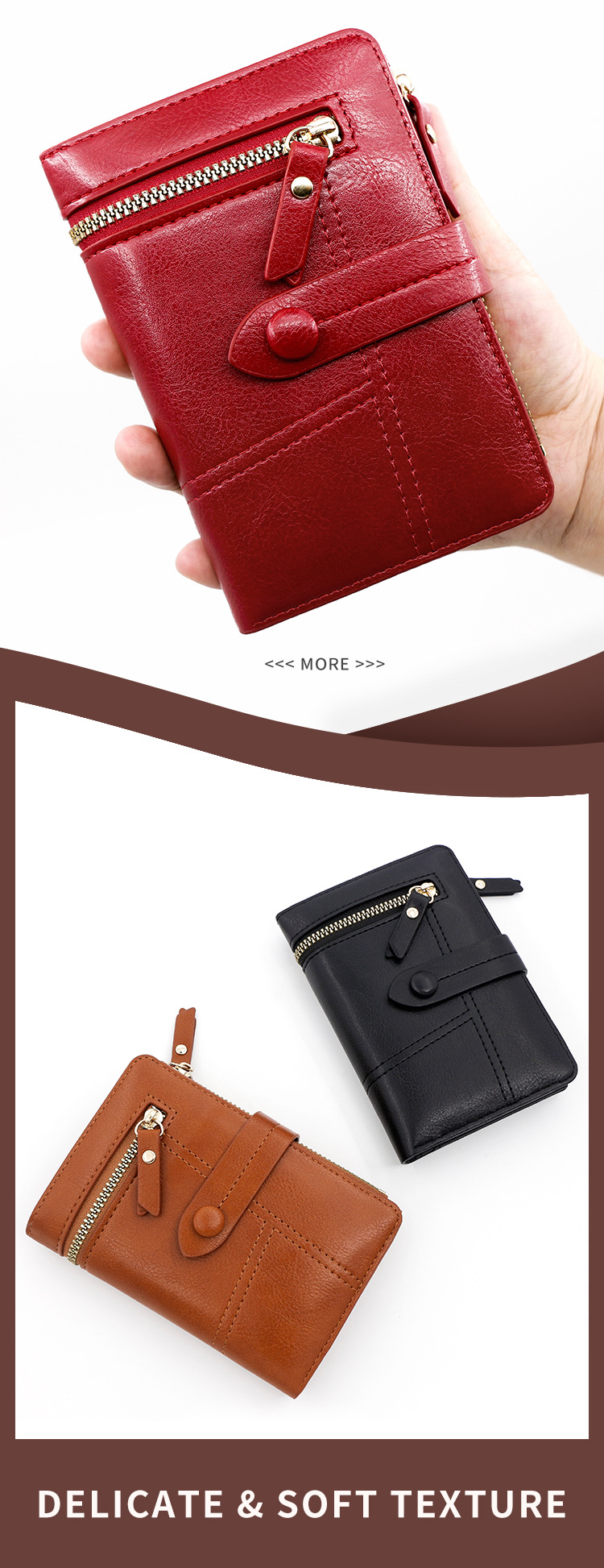 - ["High quality PU leather material","3-fold design for easy storage","Buckle closure for added security","Stylish and fashionable","Ideal for everyday use"]