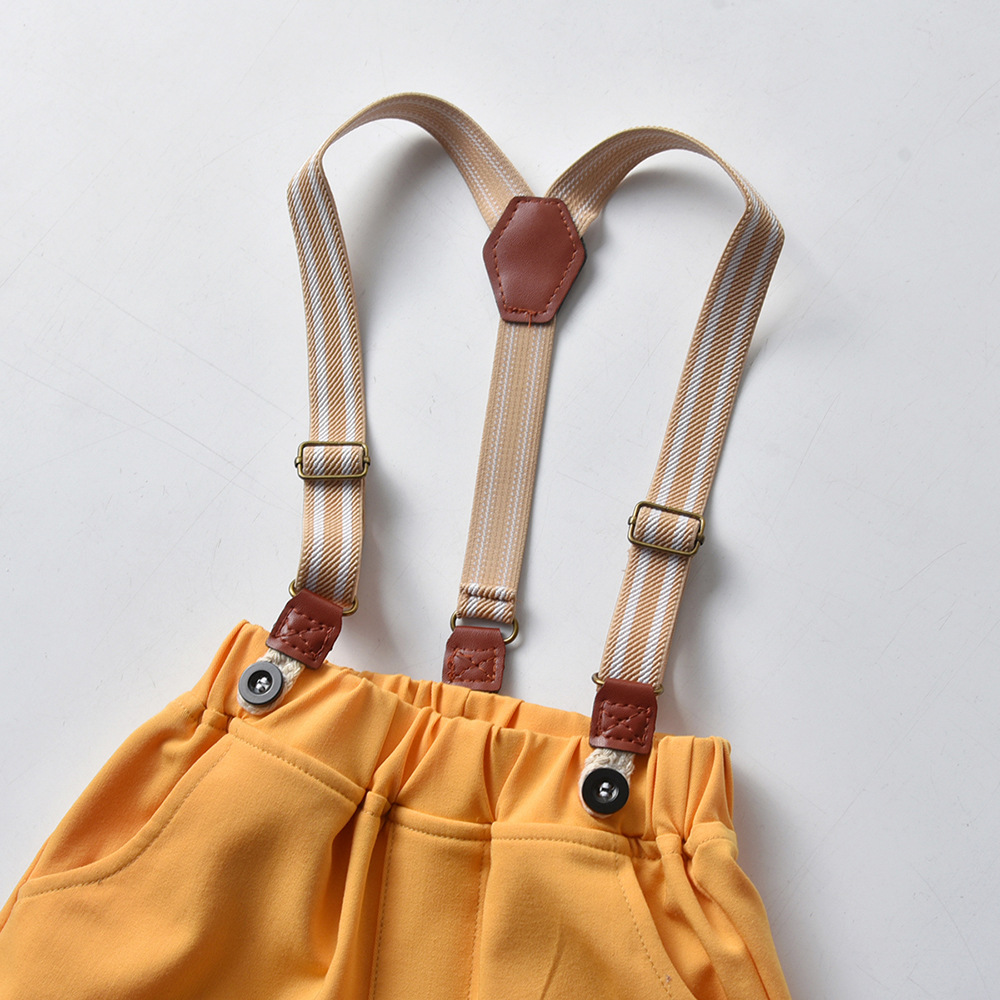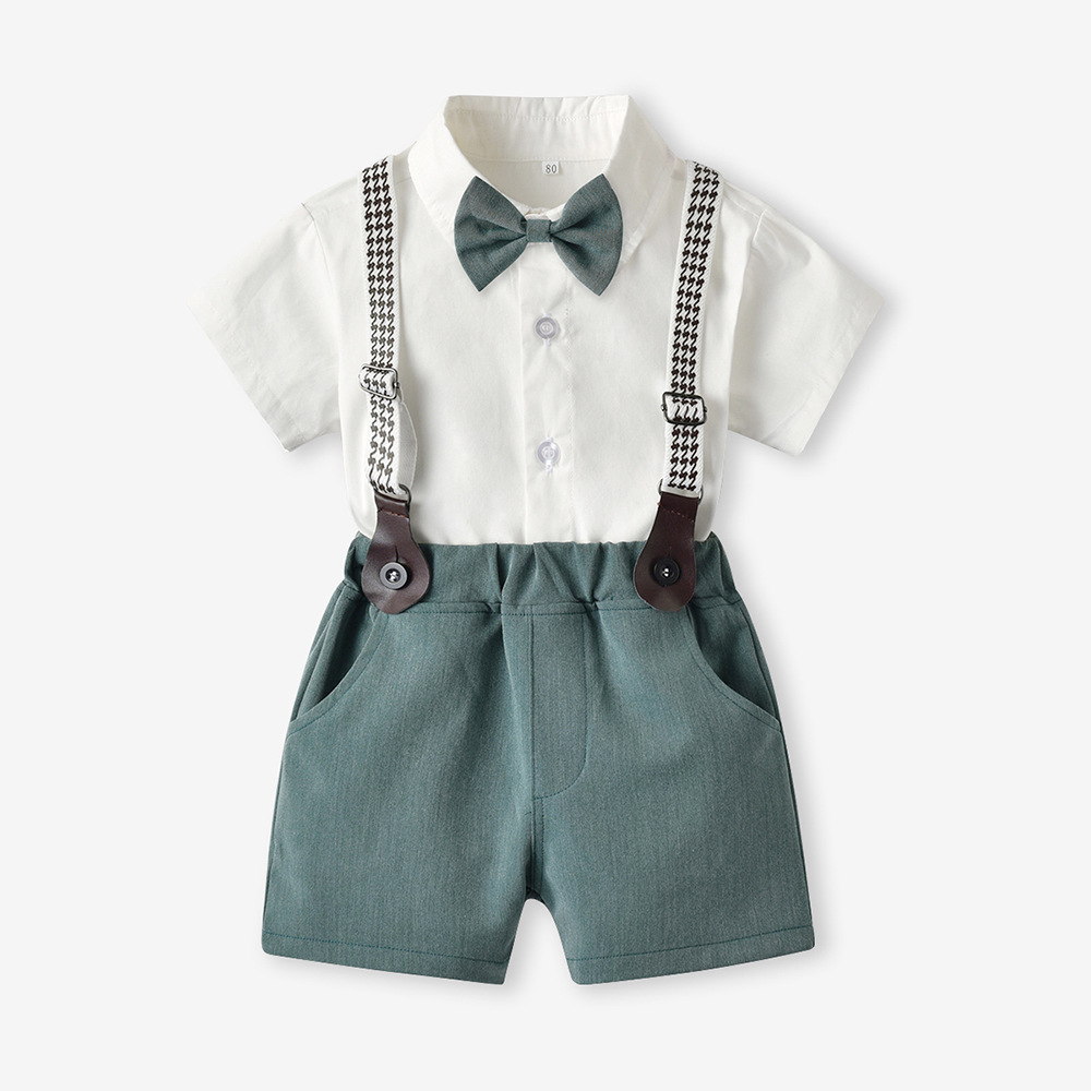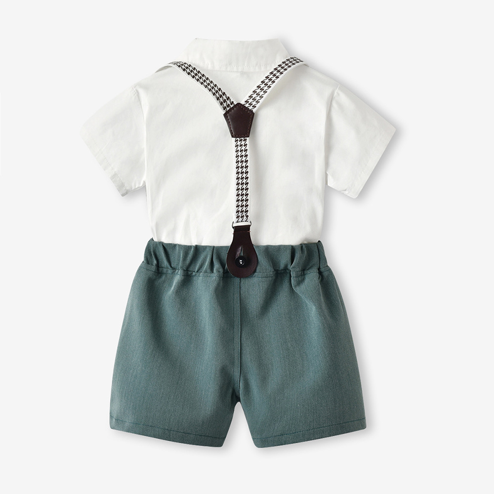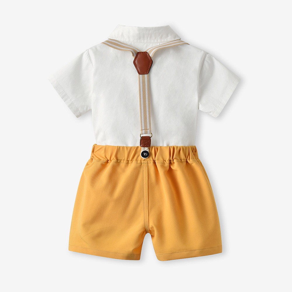 {"Style":"Korean Version","Hooded":"No Hood","Element":"Backstrap, Cute, British, Trendy","Pattern":"Solid Color","Suit Type":"Pants Suit","Thickness":"Regular","Fabric Name":"Cotton","Pant Length":"Shorts","Actual Photo":"Actual Photo with Model","Safety Level":"Class B","Closure Style":"Single Breasted","Sleeve Length":"Short Sleeve","Suitable Height":"70CM, 80cm, 90cm, 100cm, 110cm, 120cm, 130cm, 140cm, 150cm, 160cm","Gift Box Content":"No Gift Box","Suitable Age Range":"Children (3-8 years old, 100-140cm)","Trimmed Frayed Ends":"Clearly trimmed","Gender Applicability":"Male","Seasonal Suitability":"Summer","AQL Inspection Standard":"None","Main Fabric Composition":"Cotton","Number of Pieces in Set":"Two-Piece Set","Needle Pitch 12~14 Needles/3cm":"Yes","Main Fabric Composition Content":"70"}