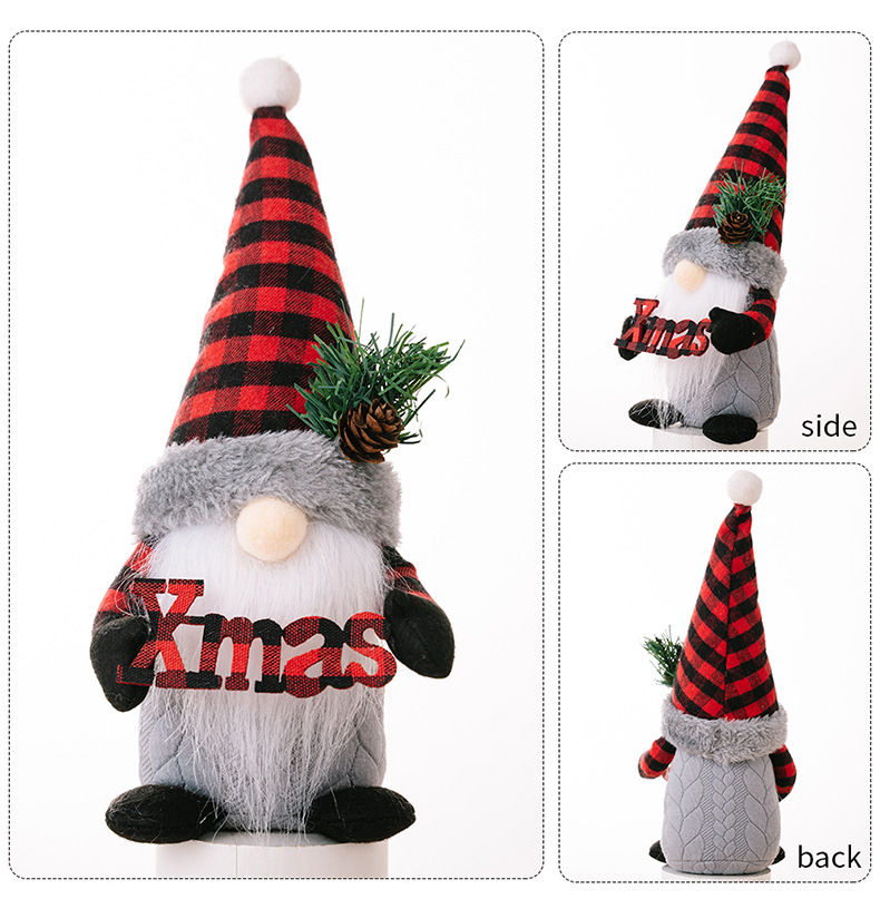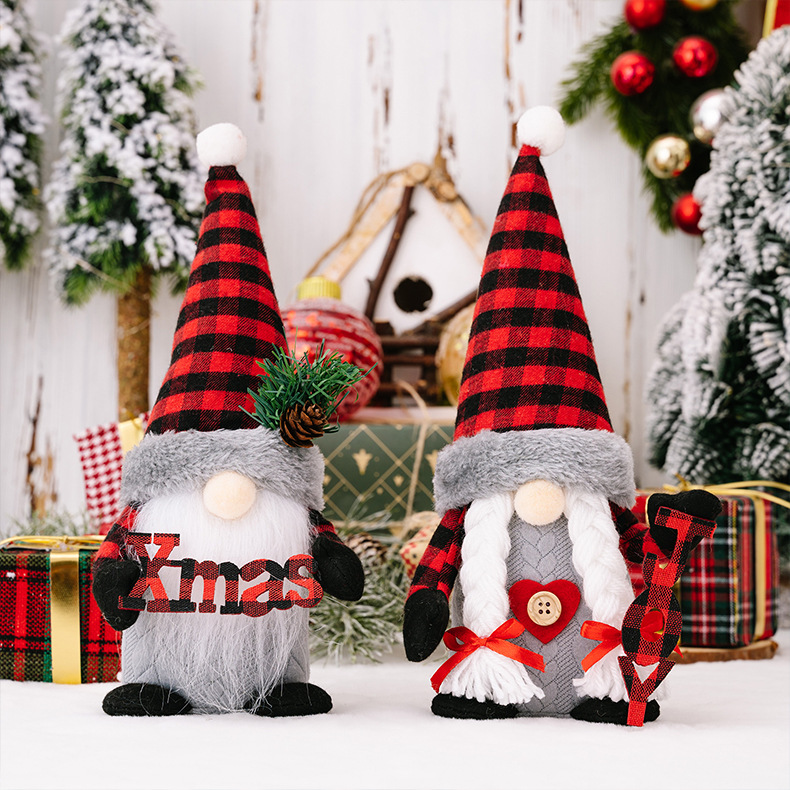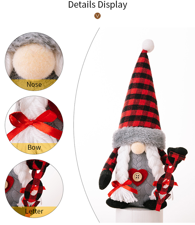 Christmas Decoration Red & Black Grid Dwarf Dolls Alphabet Old Man Dolls
