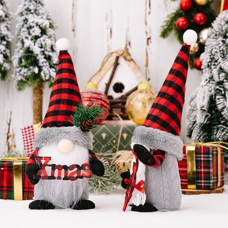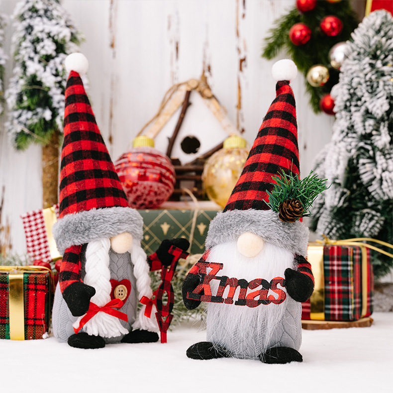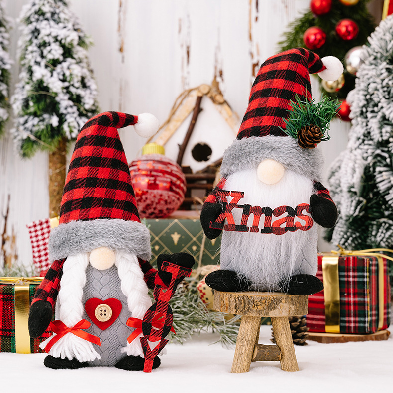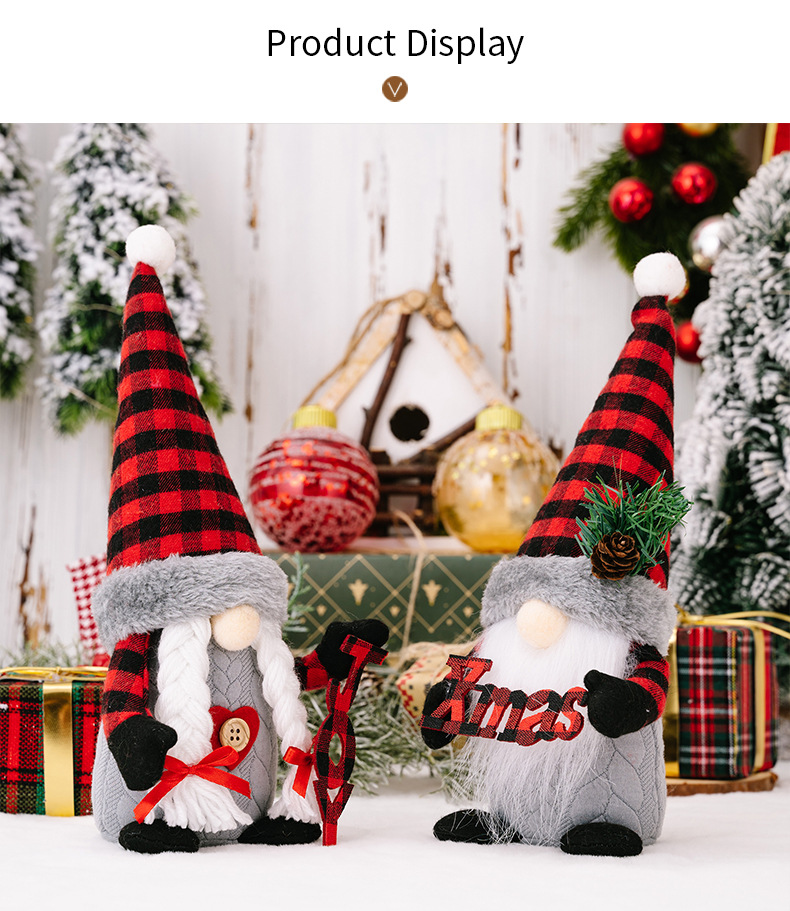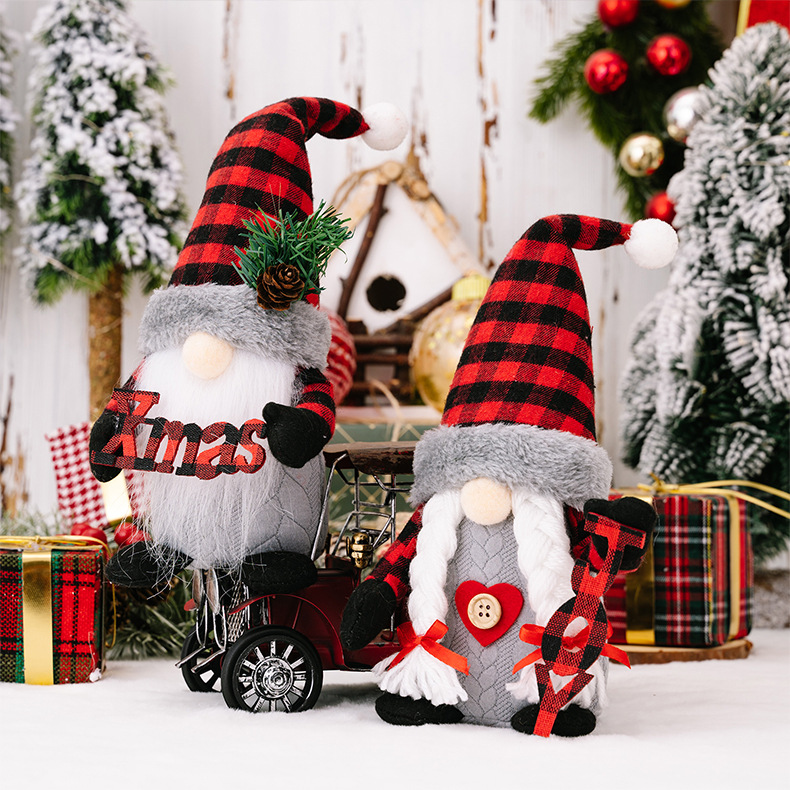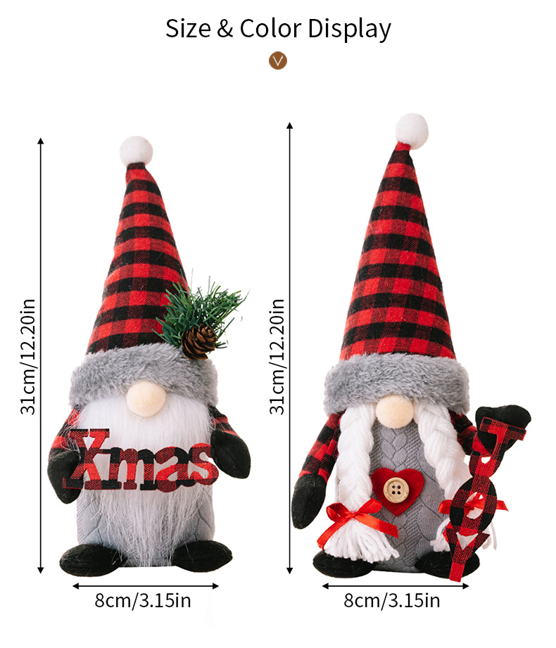 - ["Made of high-quality cotton and cloth, comfortable and durable","Red & Black Grid Dwarf Dolls for Men & Women","Perfect for Christmas decoration, adds festive atmosphere","IP authorization not included","European and American style, suitable for all kinds of occasions"]
