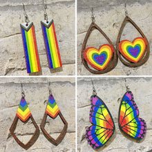 Wooden Rainbow Love Heart Earrings for Valentine's Day