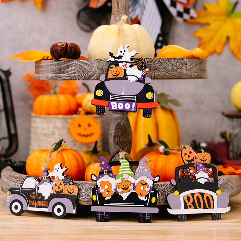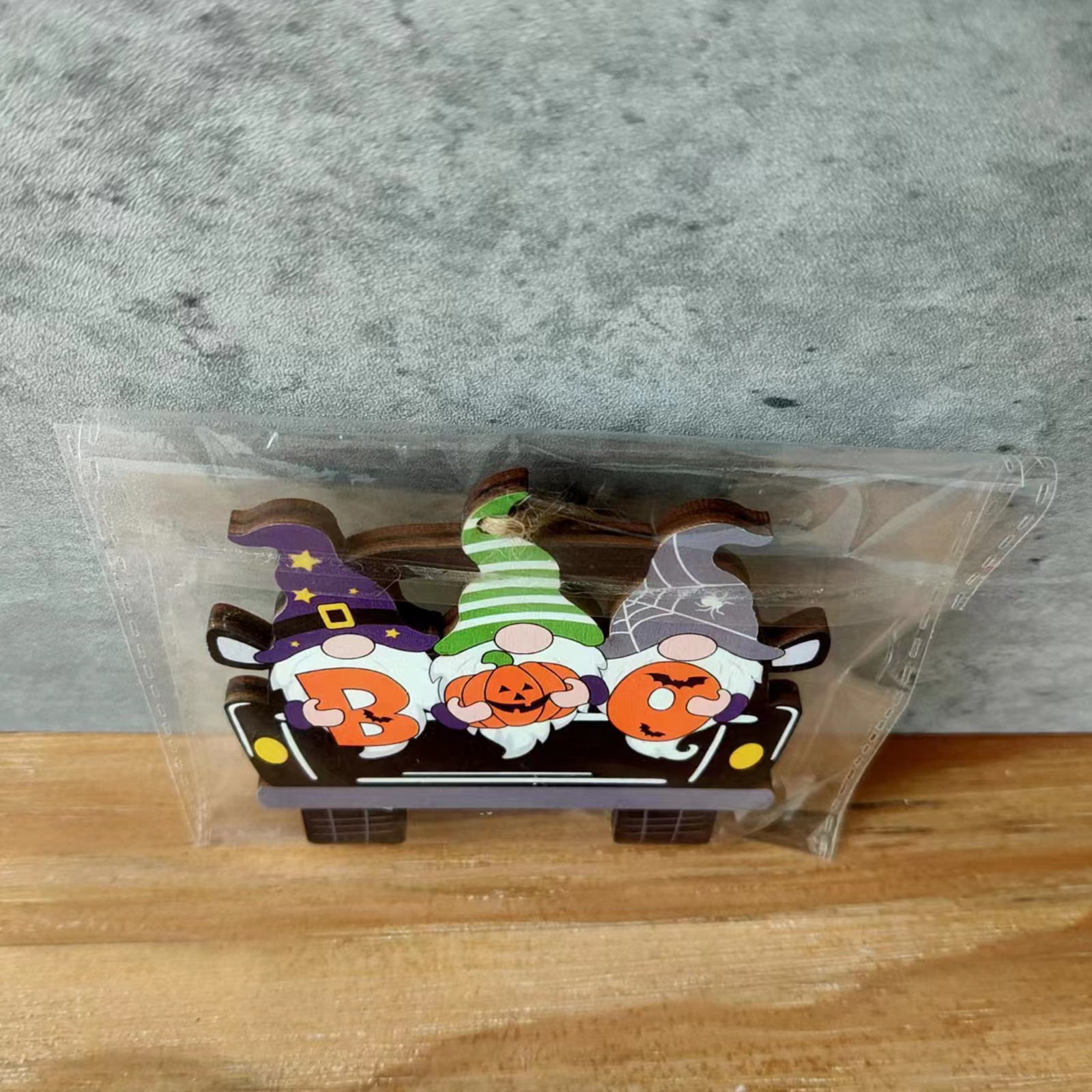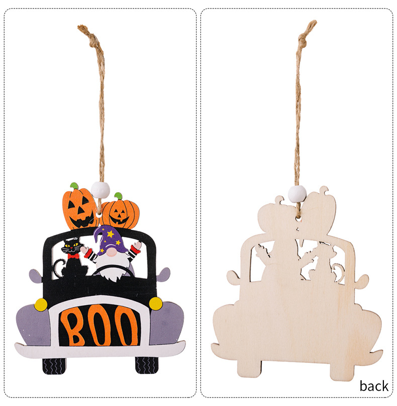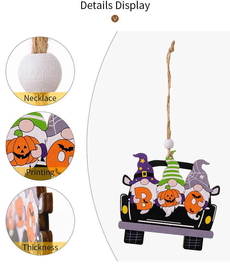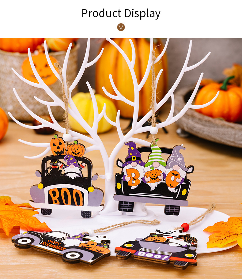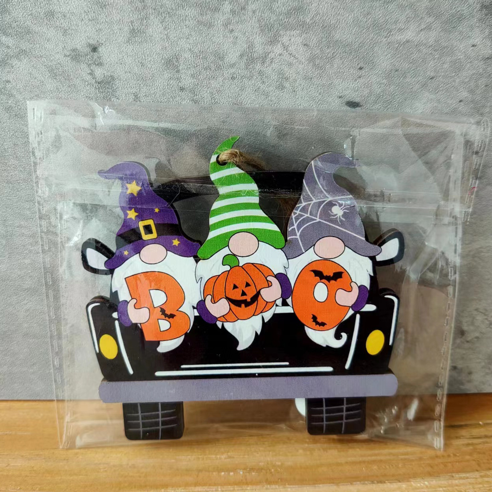 New Halloween Car Decoration BOO - Pumpkin Dwarf Car Wooden Pendant Ghost Festival Hanging Ornament