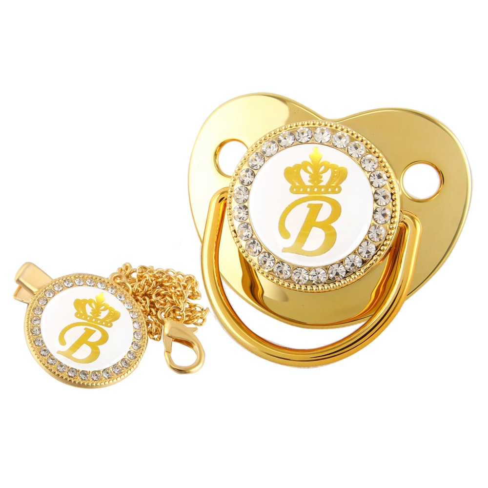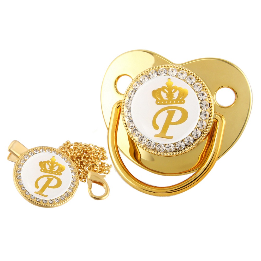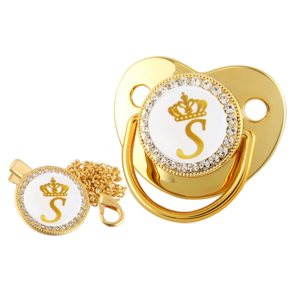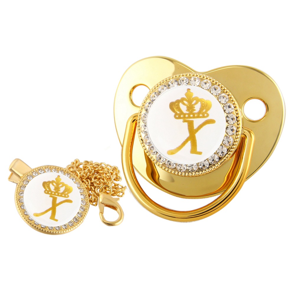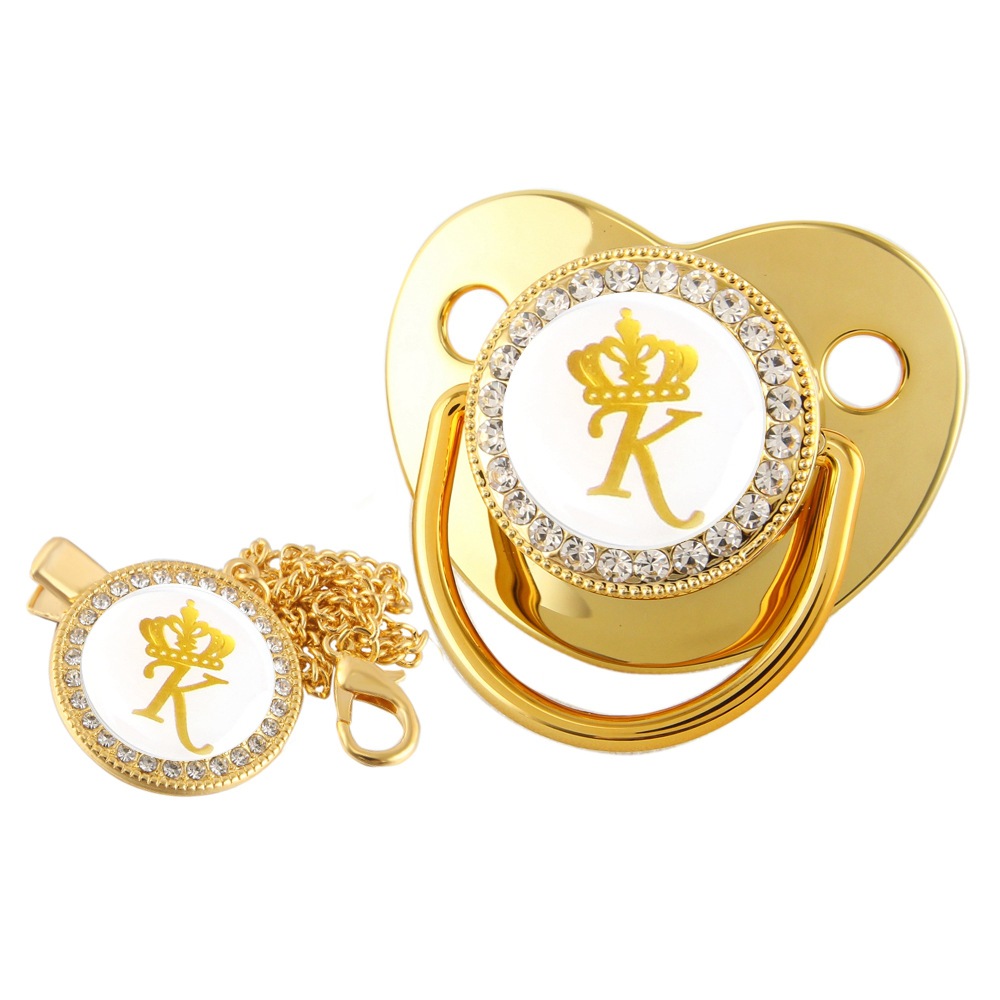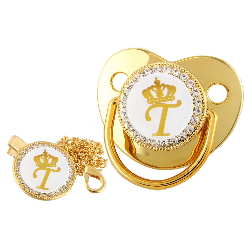 New 26 Crown Letter Gold Pacifier with Standard Size and Liquid Silicone Material for 0-3 Years Baby