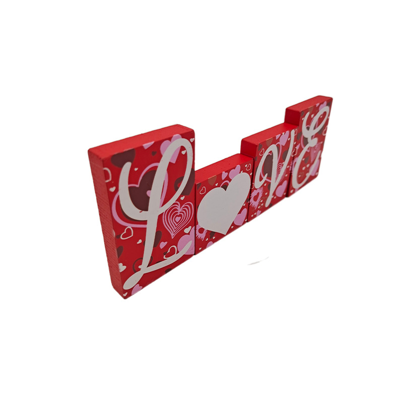 Love Letter Red Cube Decorations - Handmade Wooden Craft Home Decorations for Wedding, Anniversary and Festivals