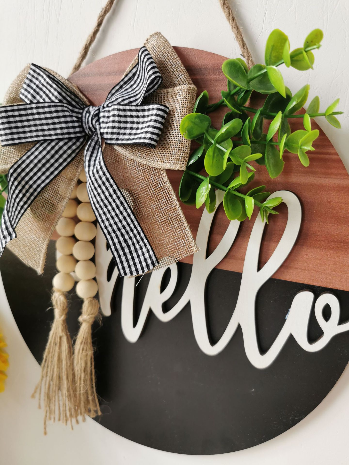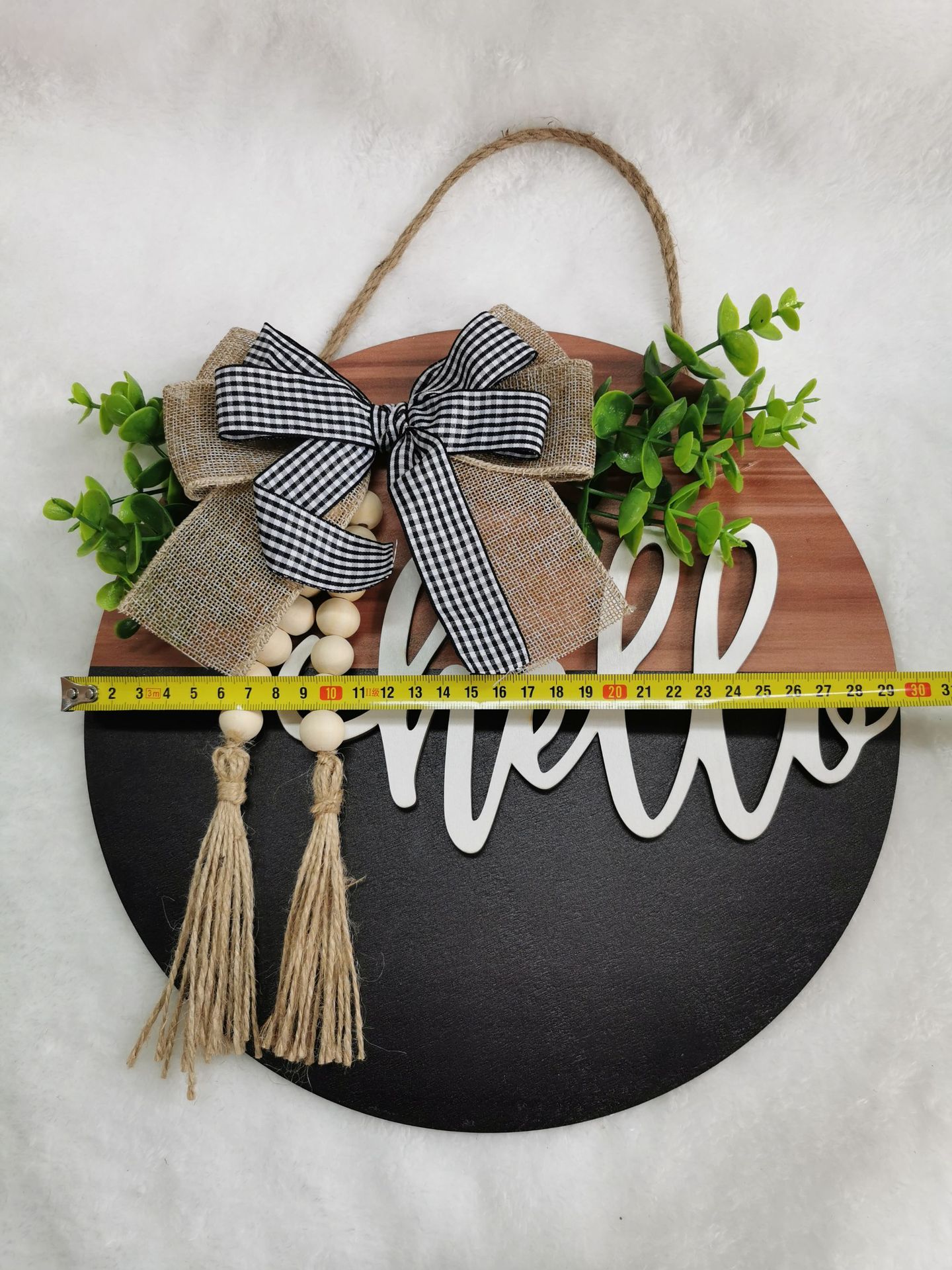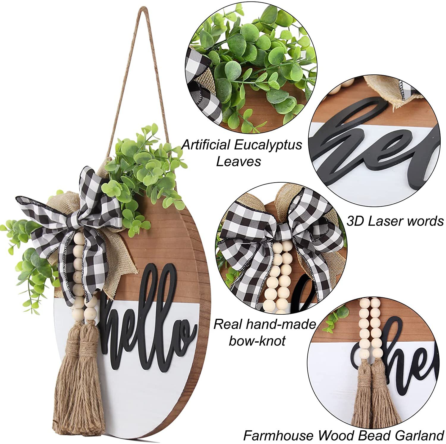 - ["Made of high quality wood material for long lasting use","European style design for a stylish look","Half hand-made and half machine-made for a unique look","Perfect for door hanging, wall decoration, farmhouse decor, etc.","Beautiful decoration for spring and summer"]
