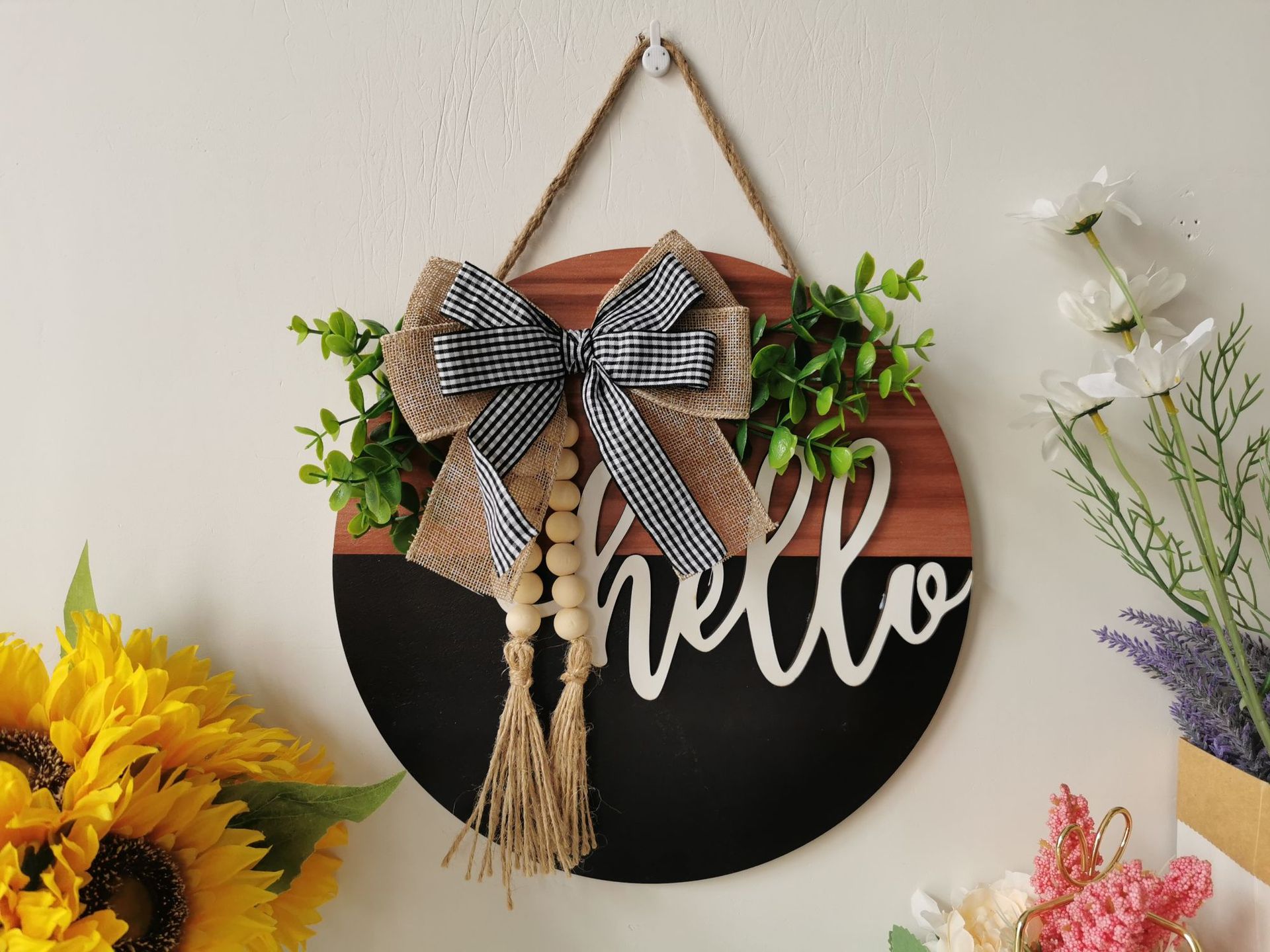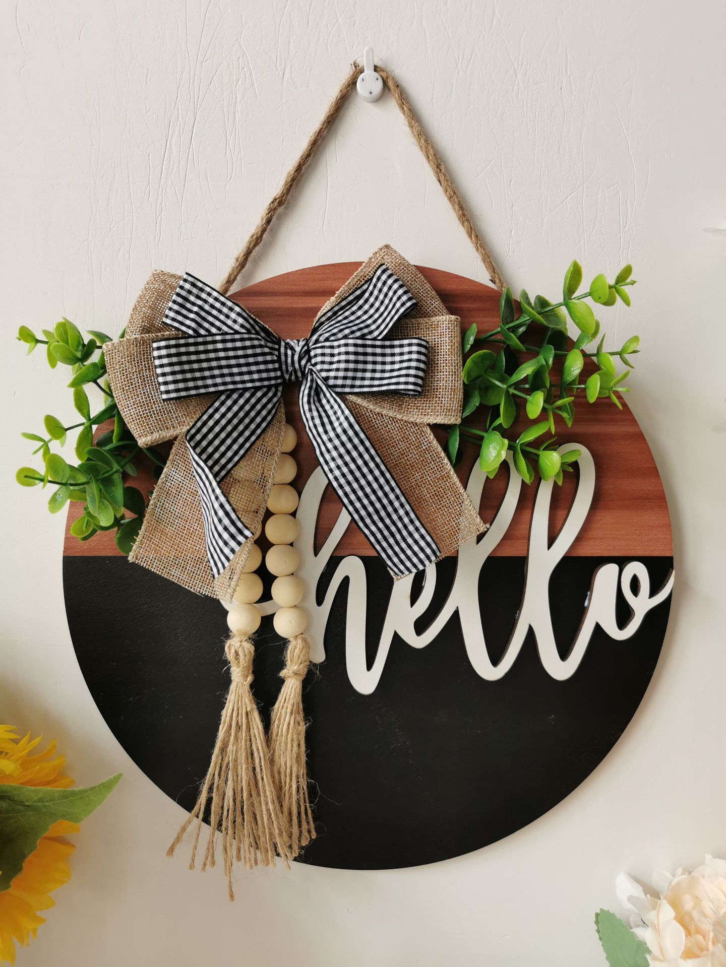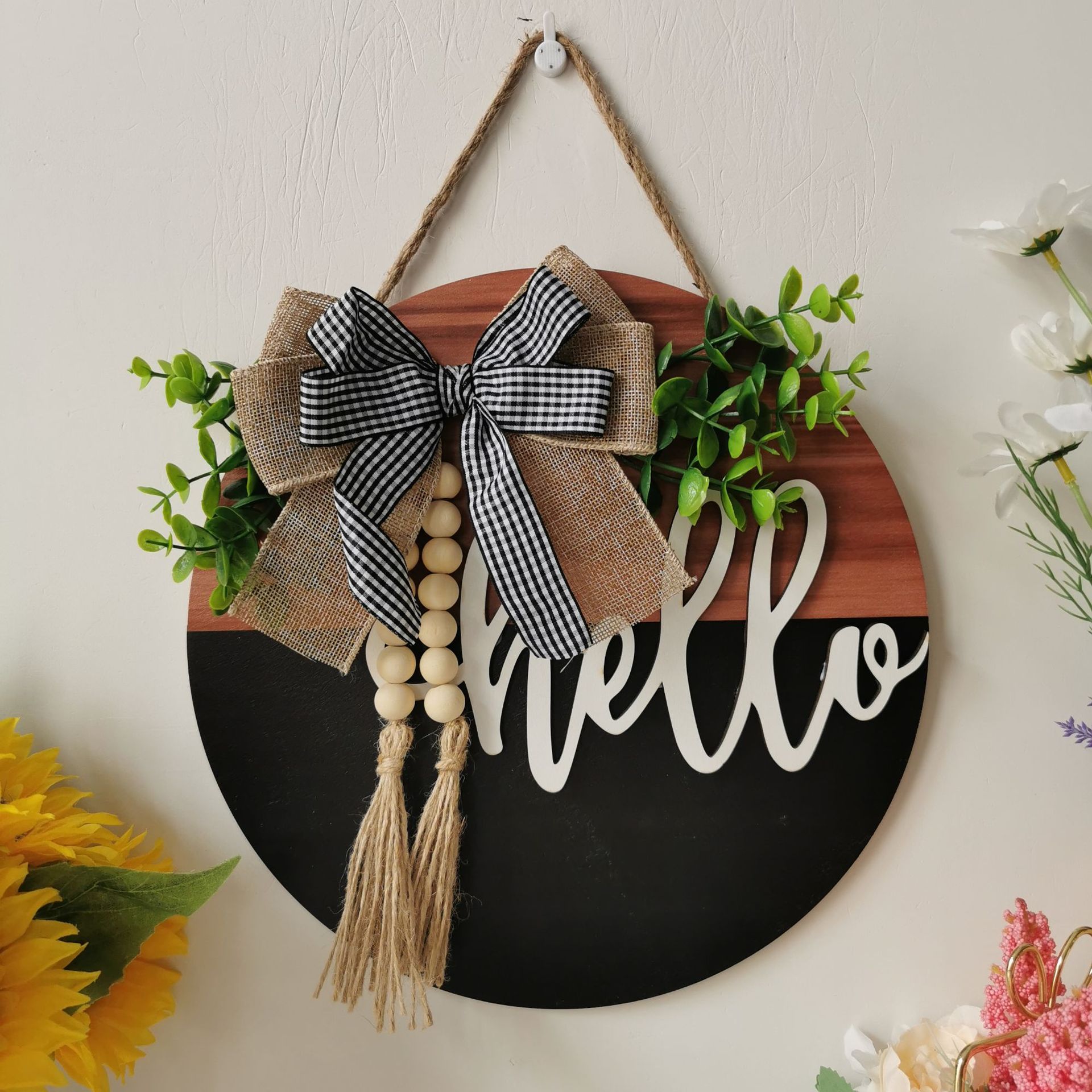 - ["Made of high quality wood material for long lasting use","European style design for a stylish look","Half hand-made and half machine-made for a unique look","Perfect for door hanging, wall decoration, farmhouse decor, etc.","Beautiful decoration for spring and summer"]