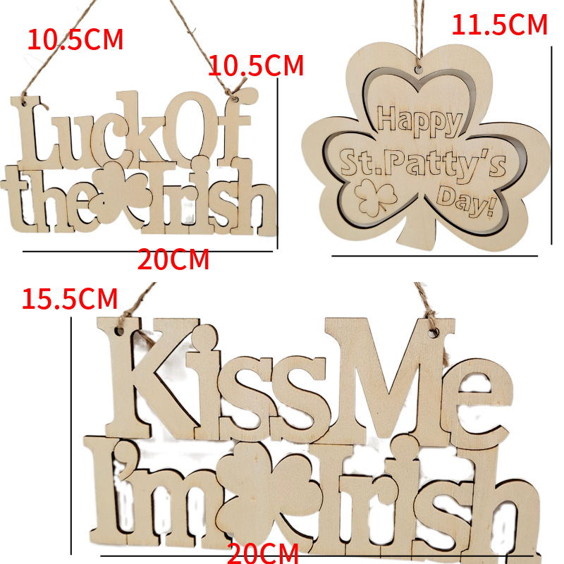 {"Shape":"Abstract","Style":"New Chinese","Pattern":"St. Patrick's Day","Category":"Craft Hanging Ornaments","Material":"Particle Board","Packaging":"PP bag individual packaging","Print Logo":"Yes","Hanging Form":"Pendant","Is it a Gift":"No","Craftsmanship":"Polishing","Patented Source":"No","Surface Process":"Polishing","Applicable Scene":"Home","IP Authorization":"No","Custom Processing":"Yes","Production Method":"Mechanical","Production Process":"Grinding"}