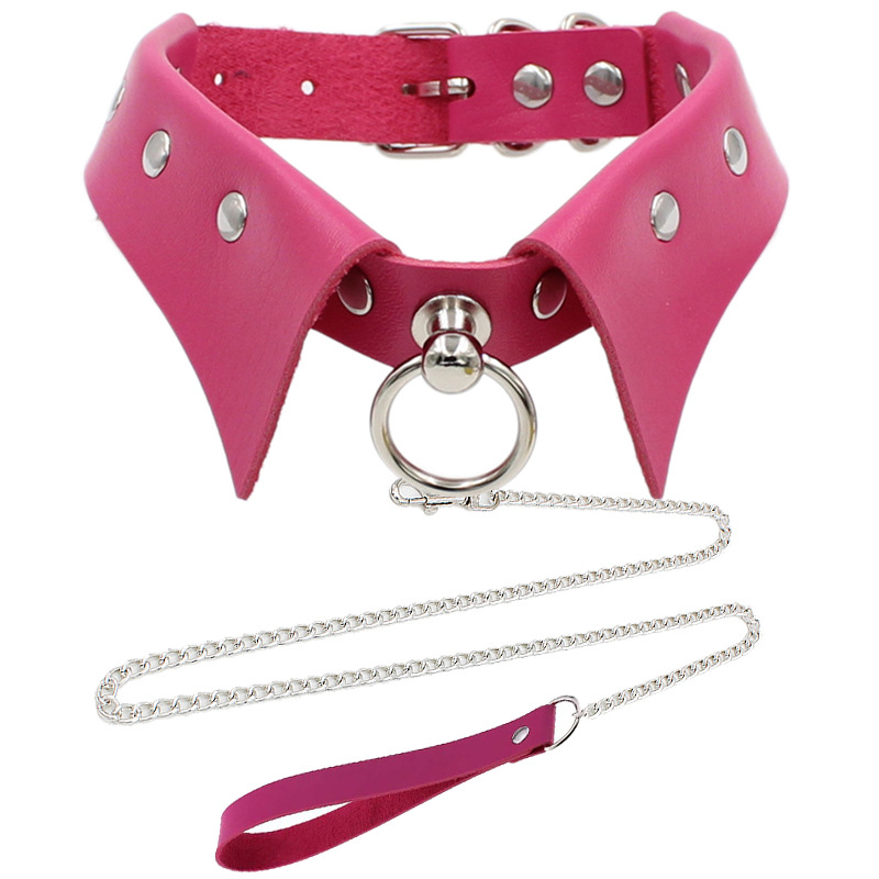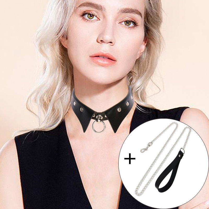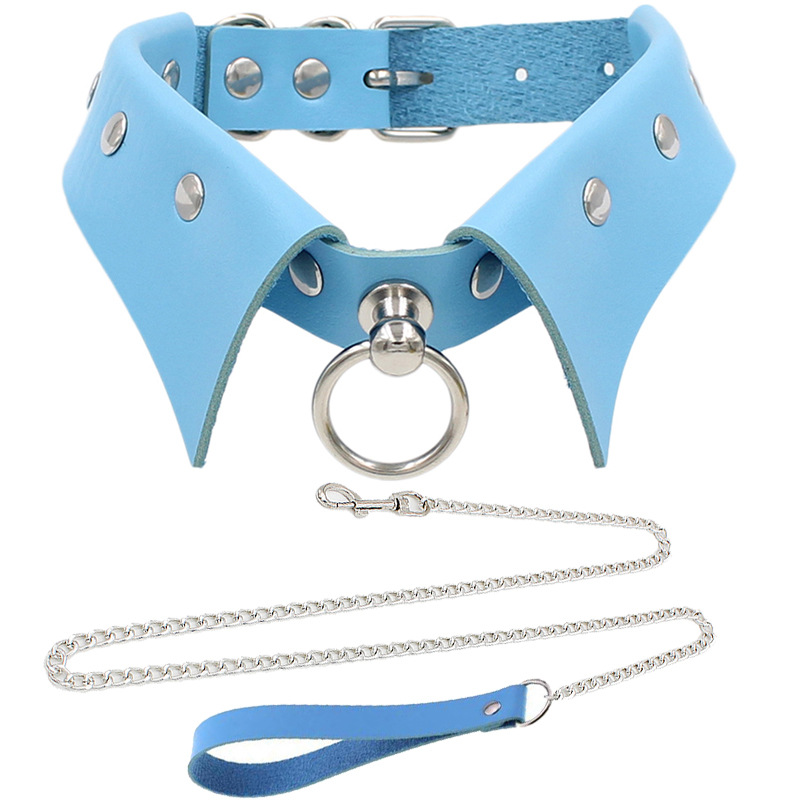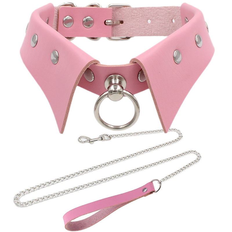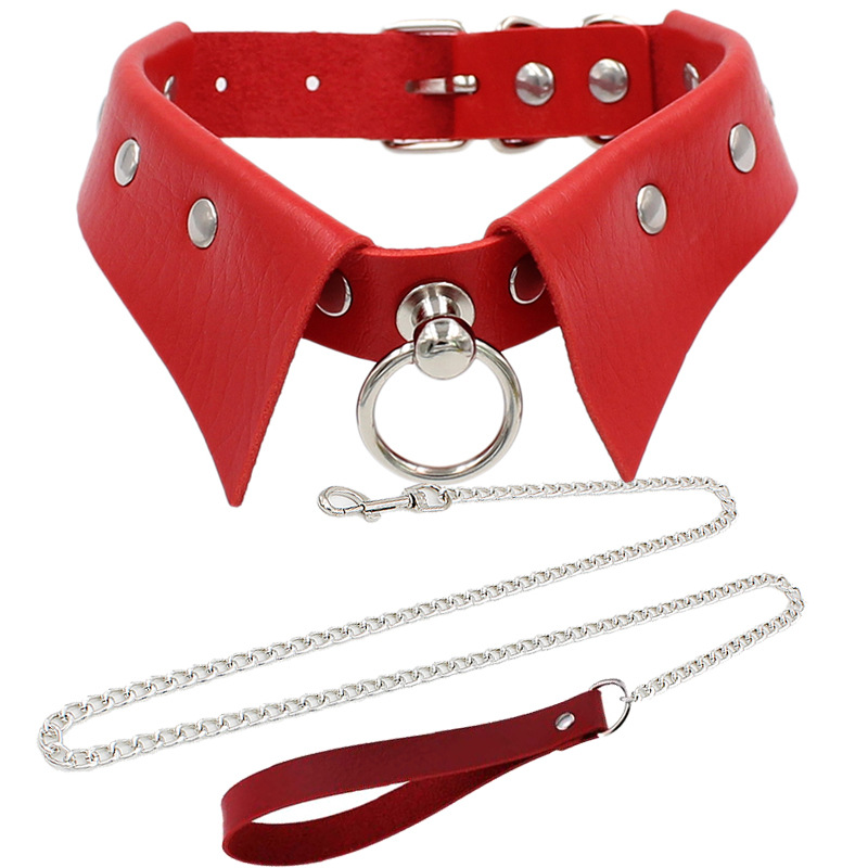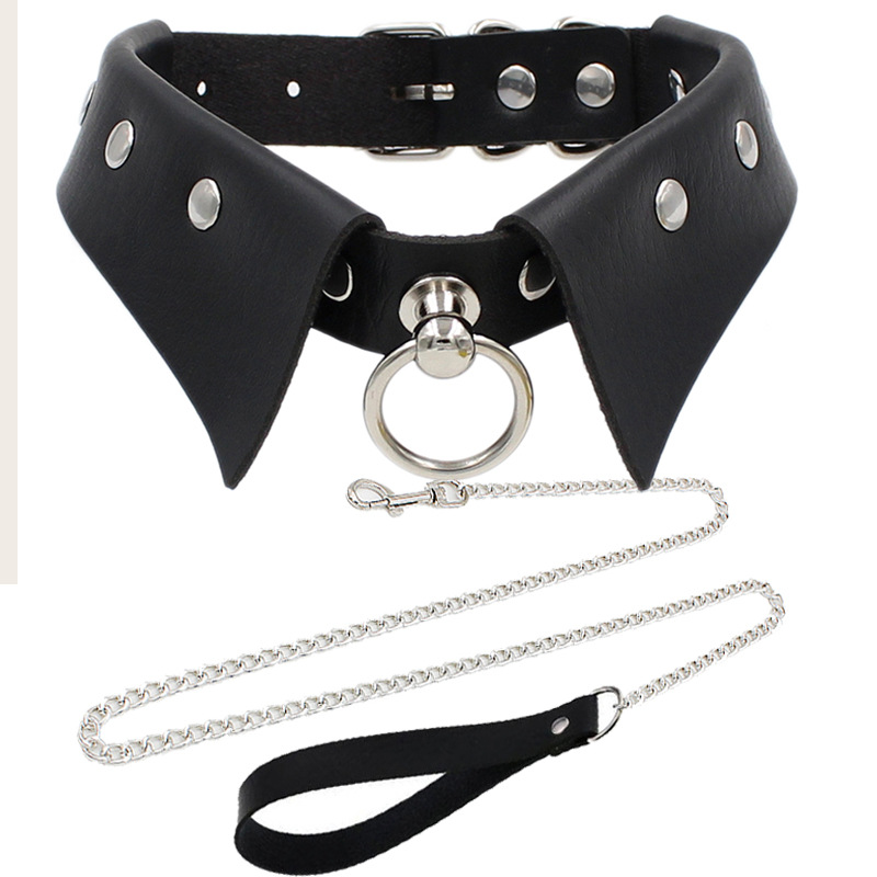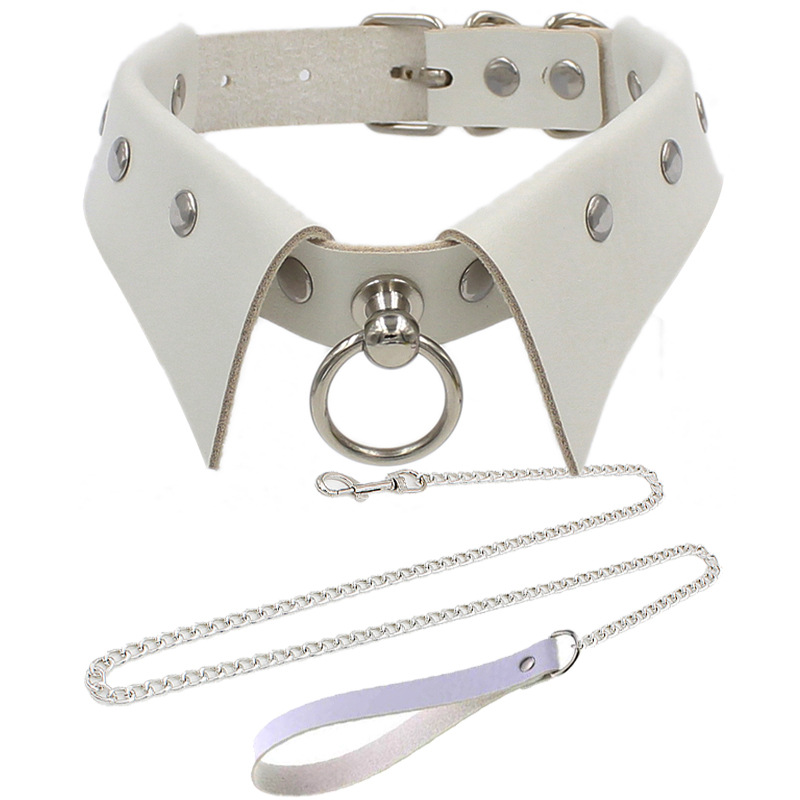 Punk Gothic Style Leather Necklace with O-Ring Pull Chain