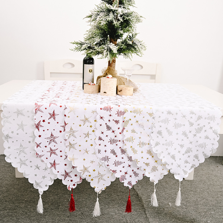 Stunning Christmas Table Flag with White Gold Embroidery for Home Decoration