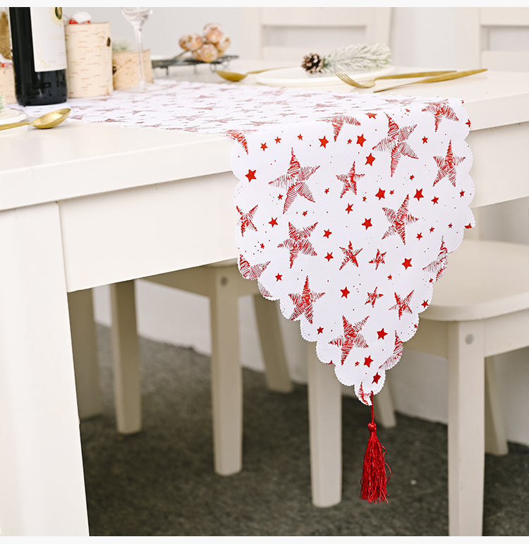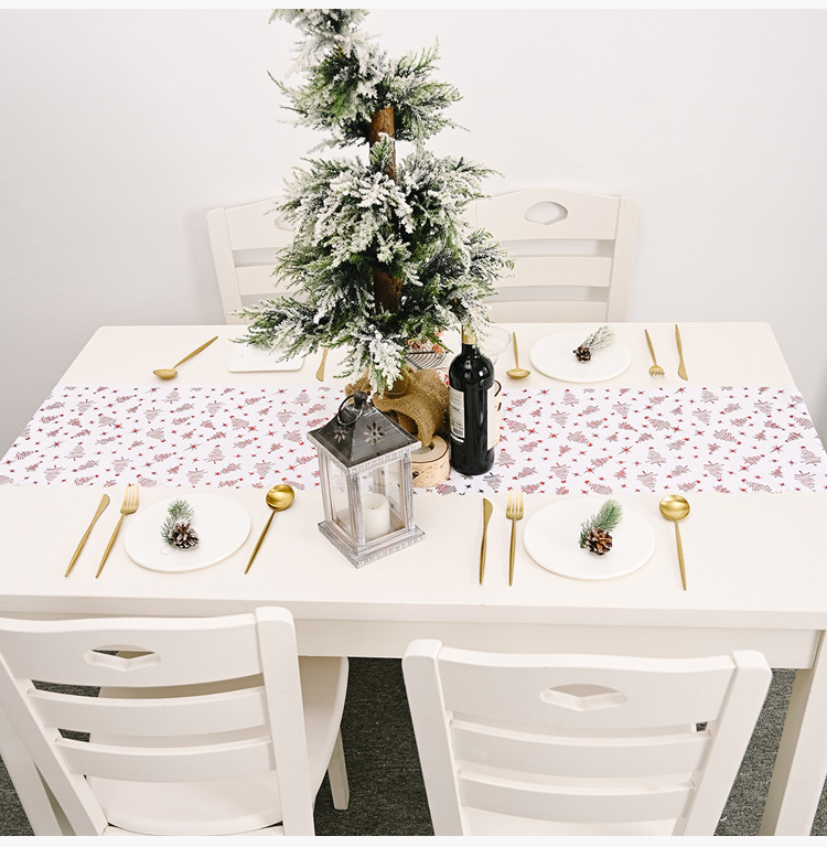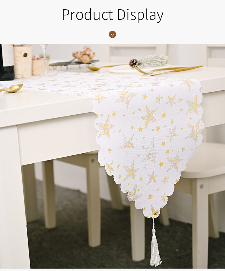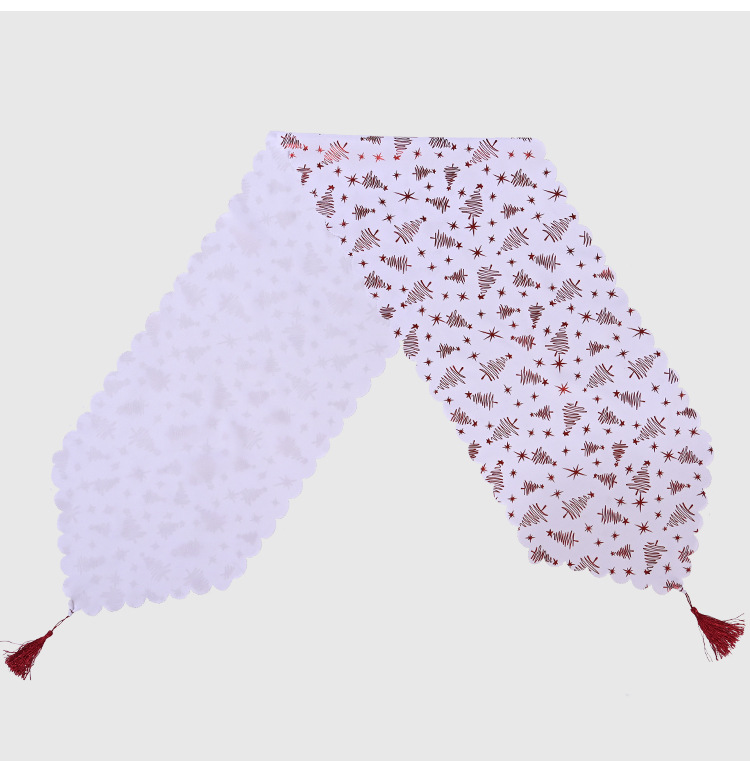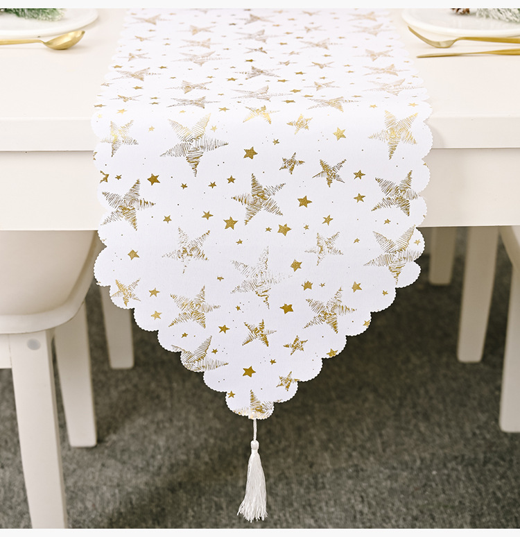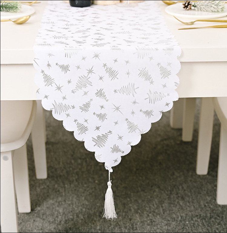 - ["Unique Christmas Table Flag","White Gold Embroidery Craft","Suitable for Home Decoration","High Quality Linen Material","Stunning Design"]