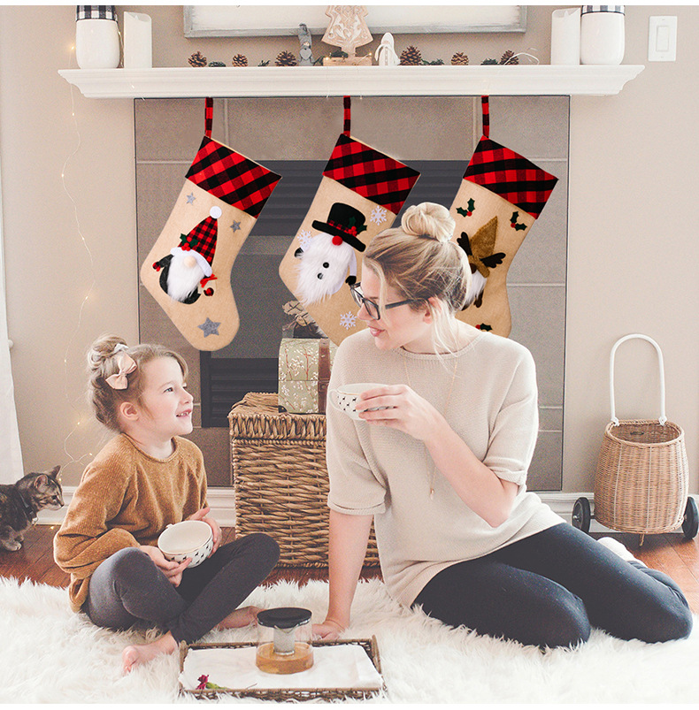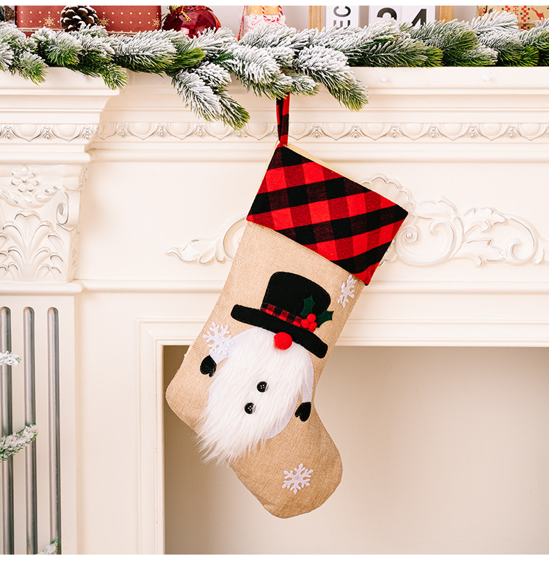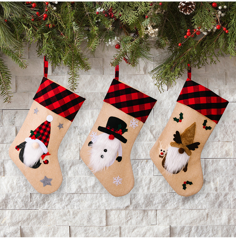 Christmas Decoration Red-Black Plaid Tapestry Embroidery Cartoon Old Man Gift Bag Window Hanging