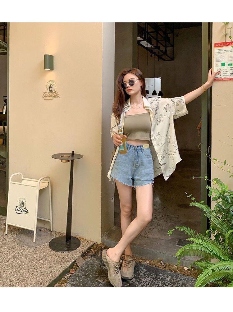 Korean 1806 Halter Top Women's Breathable Summer/Spring/Autumn Short Sleeve with Fixed Cup