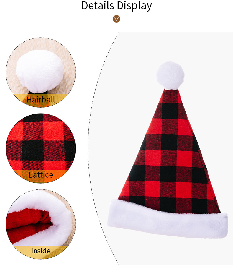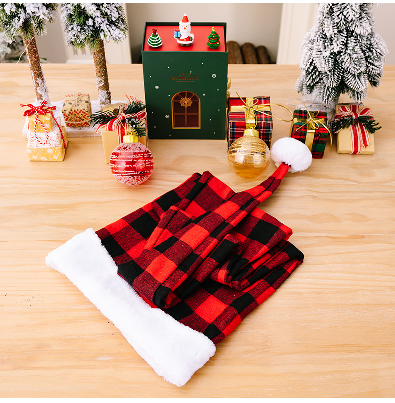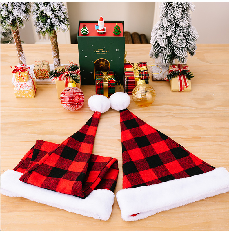 Red & Black Plaid Christmas Hat for Kids & Adults with Faux Fur Trim