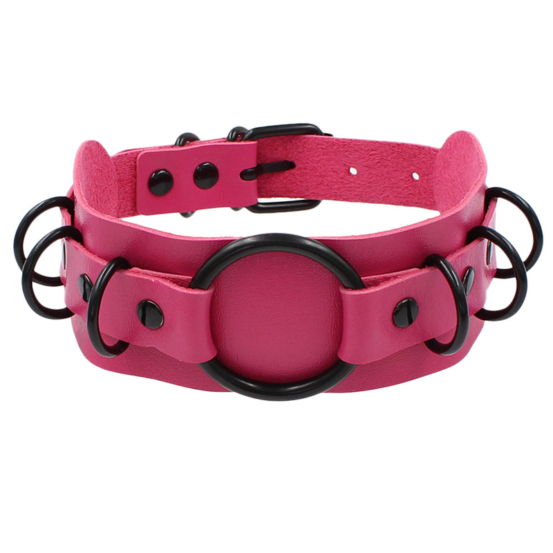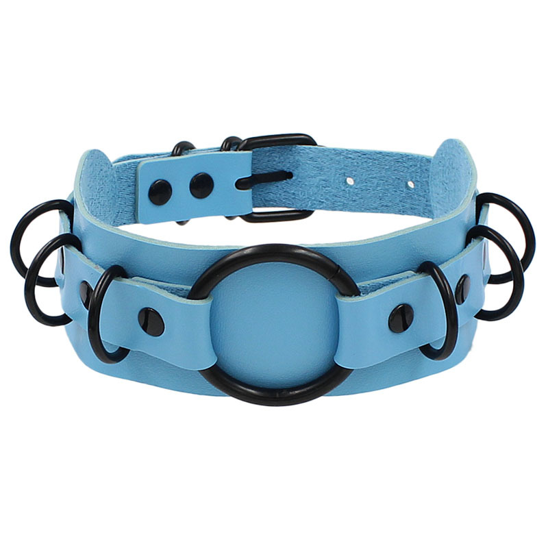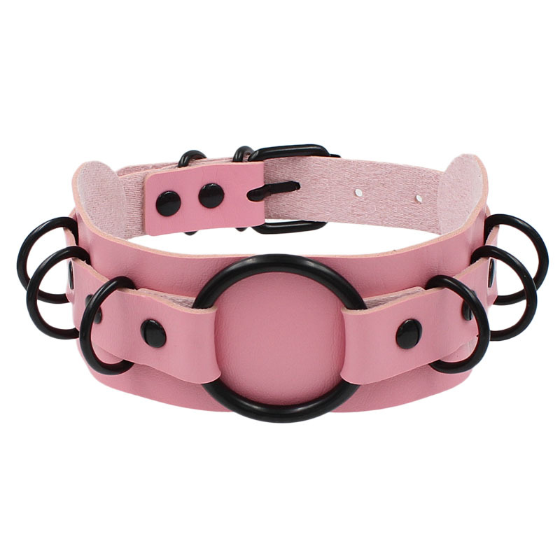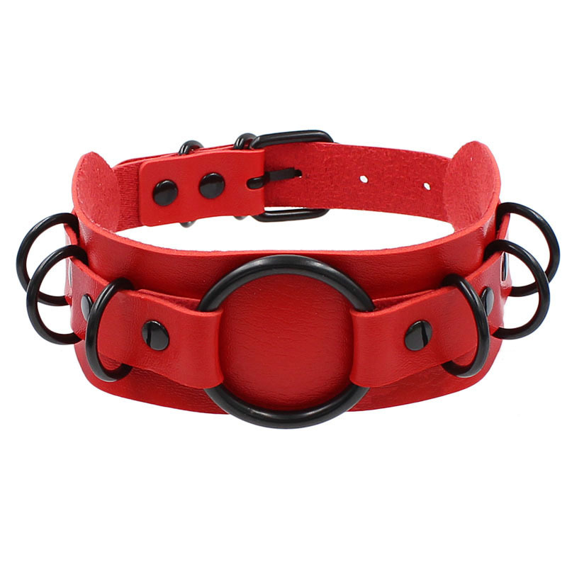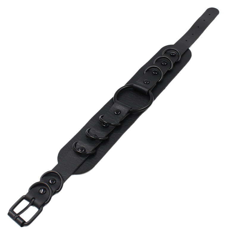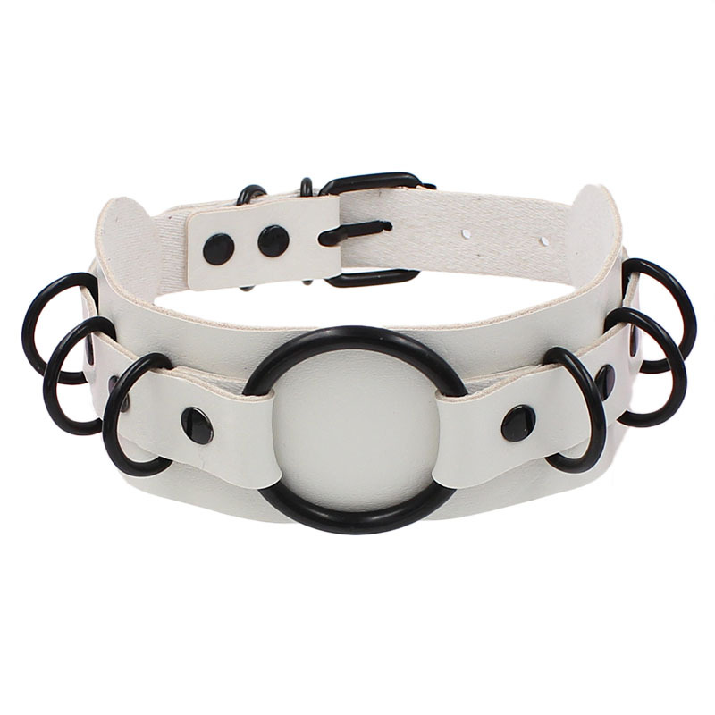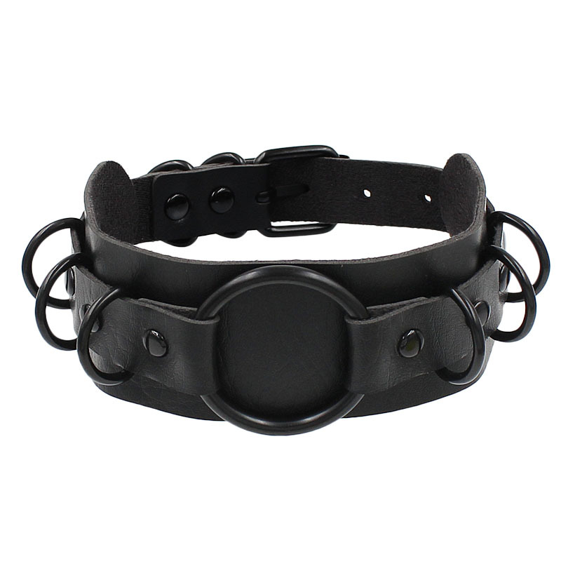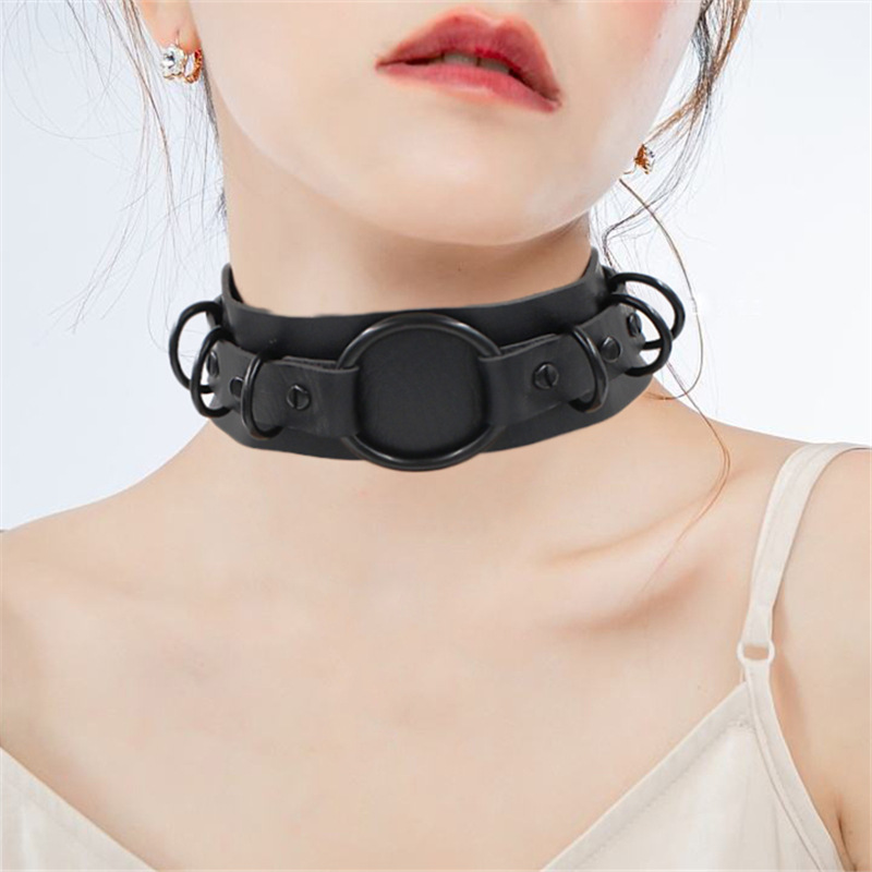 Dark Gothic PU Leather Necklace - Exaggerated Black Round Ring Lockbone Necklace