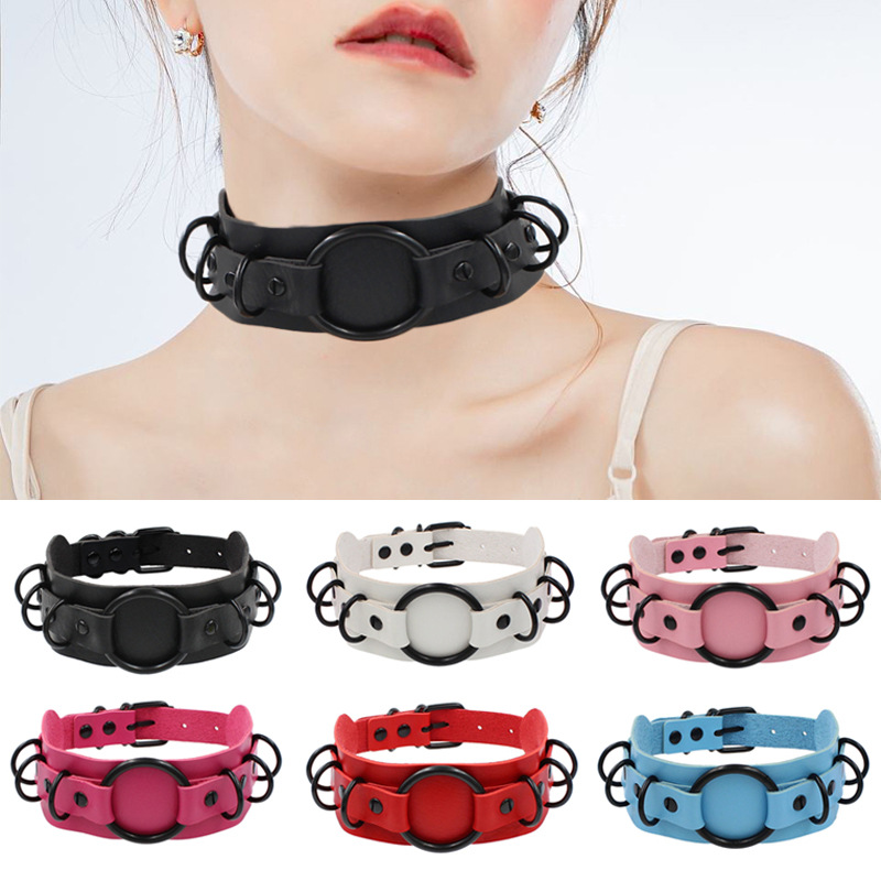 - ["Unique and fashionable design","Made of PU leather, durable and comfortable","Exaggerated black round ring lockbone necklace","Suitable for wedding, travel, employee benefits","Customizable size and shape"]