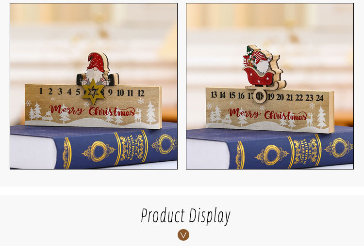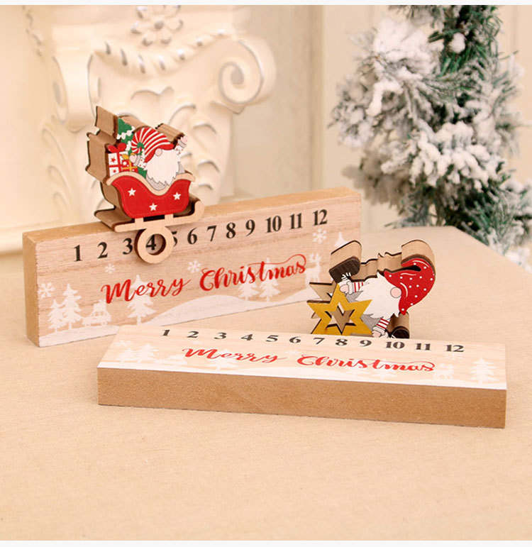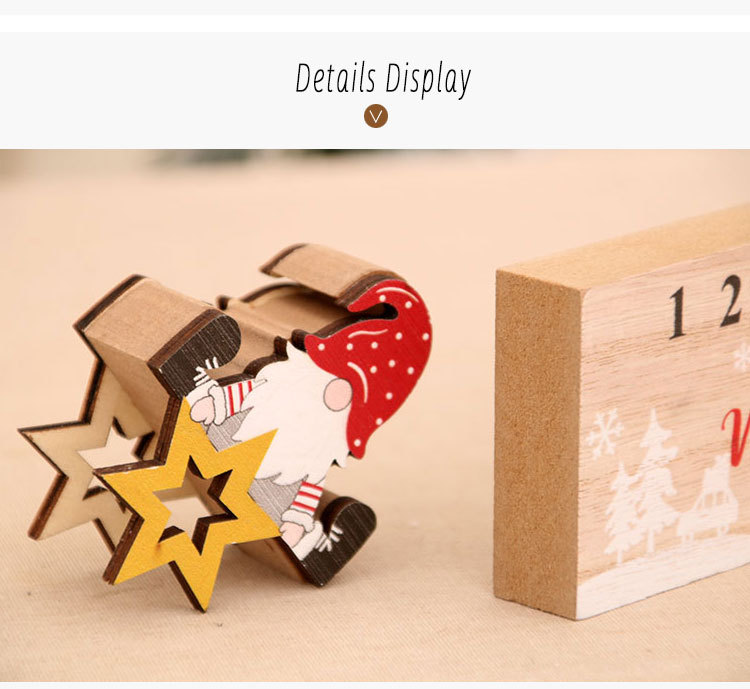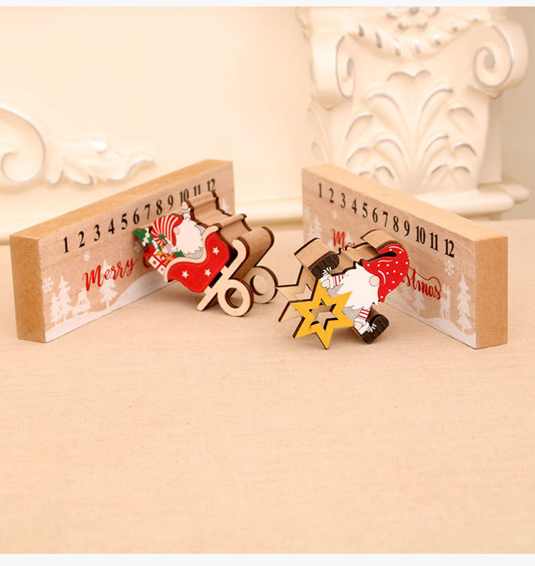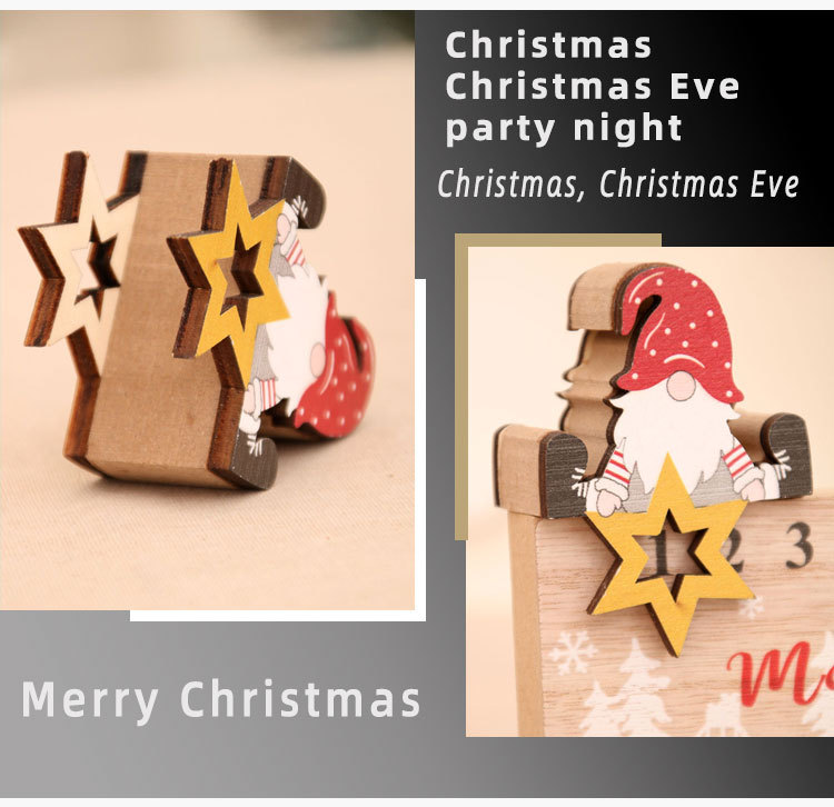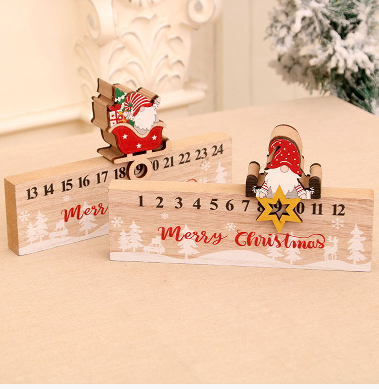 Creative Wooden Calendar Decor with No Face Old Man for Christmas Countdown