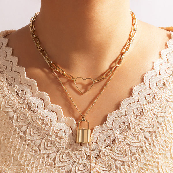 {"Type":"Necklace","Shape":"Heart-shaped","Style":"Women's","Material":"Alloy","Packaging":"Individual Packaging","Perimeter":"21cm(inclusive)-50cm(inclusive)","Chain Style":"Regular Chain","Multi-layer":"Yes","With Pendant":"Yes","Extension Chain":"Less than 10cm","Fashion Element":"Metal, Heart, Padlock, Chain, Geometry","Pendant Material":"Alloy","Custom Processing":"Yes","Processing Technology":"Electroplating","Suitable for Gift Occasions":"Wedding, Travel Souvenir, Employee Benefits"}