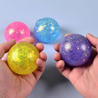- ["Made of TPR material for safe use","Slow bounce design for better control","Golden powder for more fun and attractive","Suitable for 3-6 years old kids","Come with OPP bag packaging"]