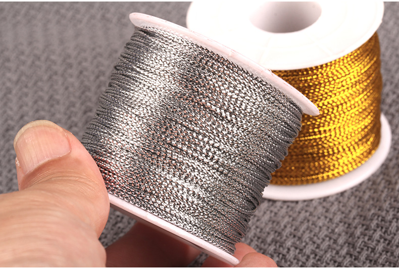 - ["Handmade Braided Gold & Silver Wire","Made of Gold & Silver Wire","Available in 8 Colors","Elastic 1mm","Suitable for Home,Bag,Window Screen,Clothing,Home Textiles,Weaving,Embroidery,Industrial Use"]