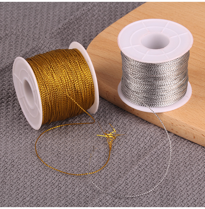 Handmade Braided Gold & Silver Wire Gift Box Bundling Rope 8 Strand Card Tag Line Elastic 1mm