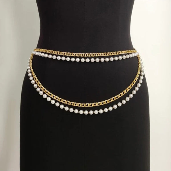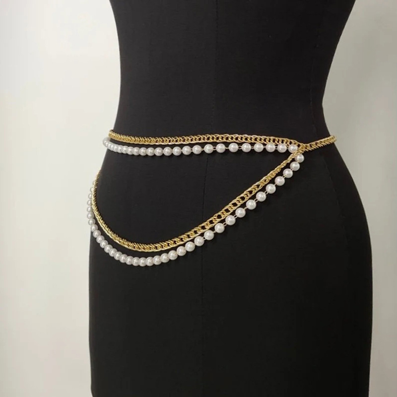 Fashionable Pearl Chain Belt for Women - Double Layer Combination Simple and Elegant Body Chain Accessory