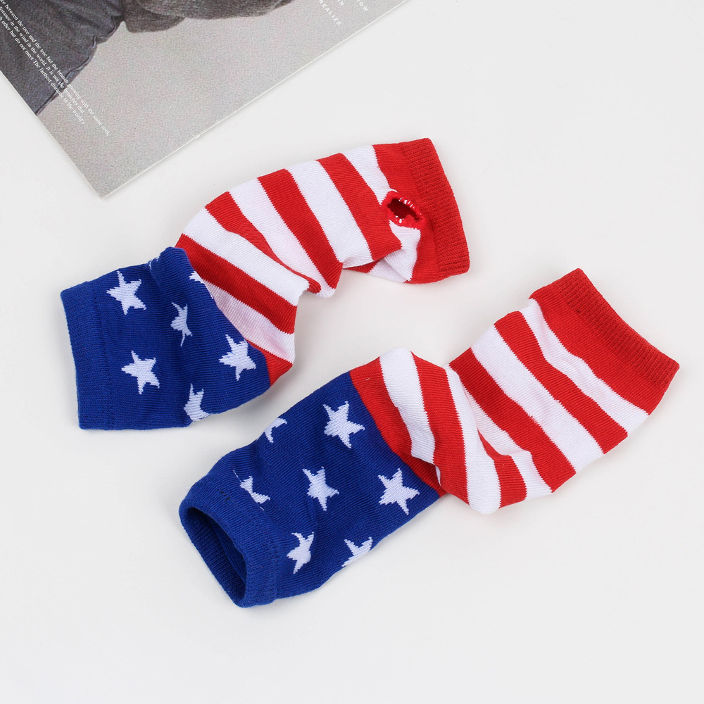 - ["Made of high quality cotton blend material for great comfort","Features a unique American Independence Day flag pattern","Designed with a high sock length for a trendy look","Comes with striped gloves for a complete set","Available in youth sizes for a perfect fit"]