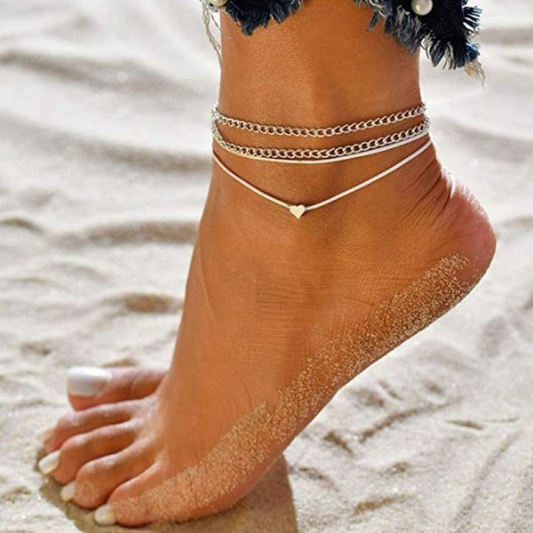Bohemian Style Heart-Shaped Double Layer Anklet for Women