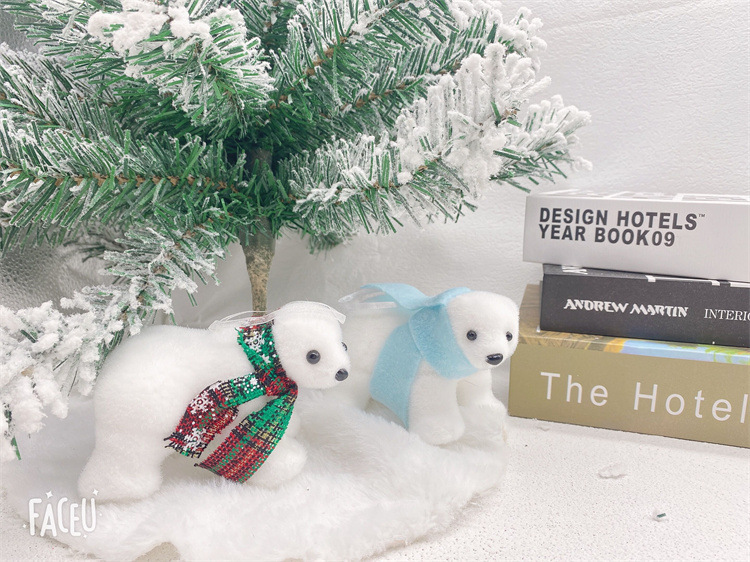 Christmas White Foam Scarf Bear Pendant Christmas Tree Decoration Pendant Scene Layout Desktop Pendant