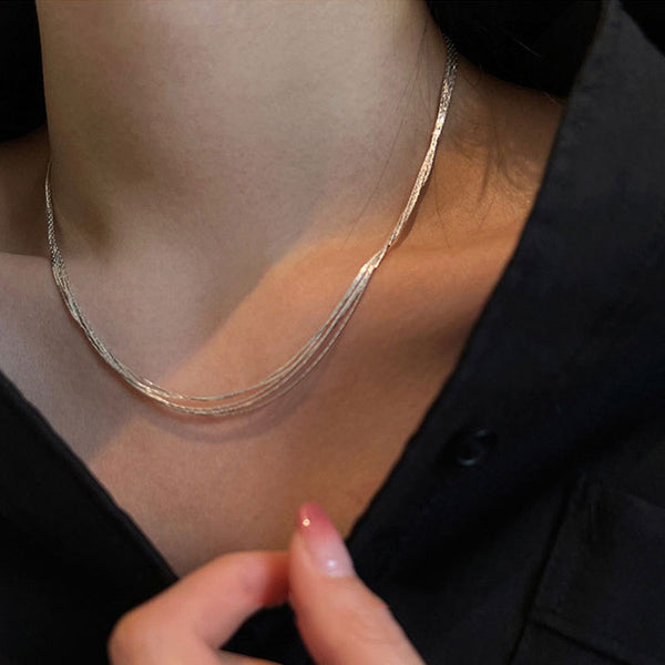 {"Shape":"Geometric","Style":"Korean Style","Length":"31cm(inclusive)-40cm(inclusive)","Material":"Copper","Chain Style":"Snakebone Chain","Multi-layer":"Yes","Fashion Element":"Lines","Applicable Crowd":"Female","Pendant Material":"None","Style Classification":"Fresh and Sweet","Processing Technology":"Electroplating","Fashion Element Category":"Geometry"}