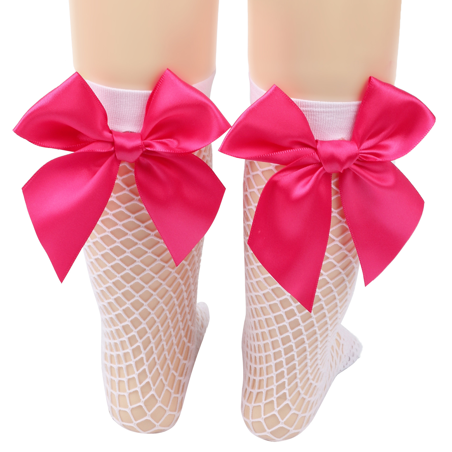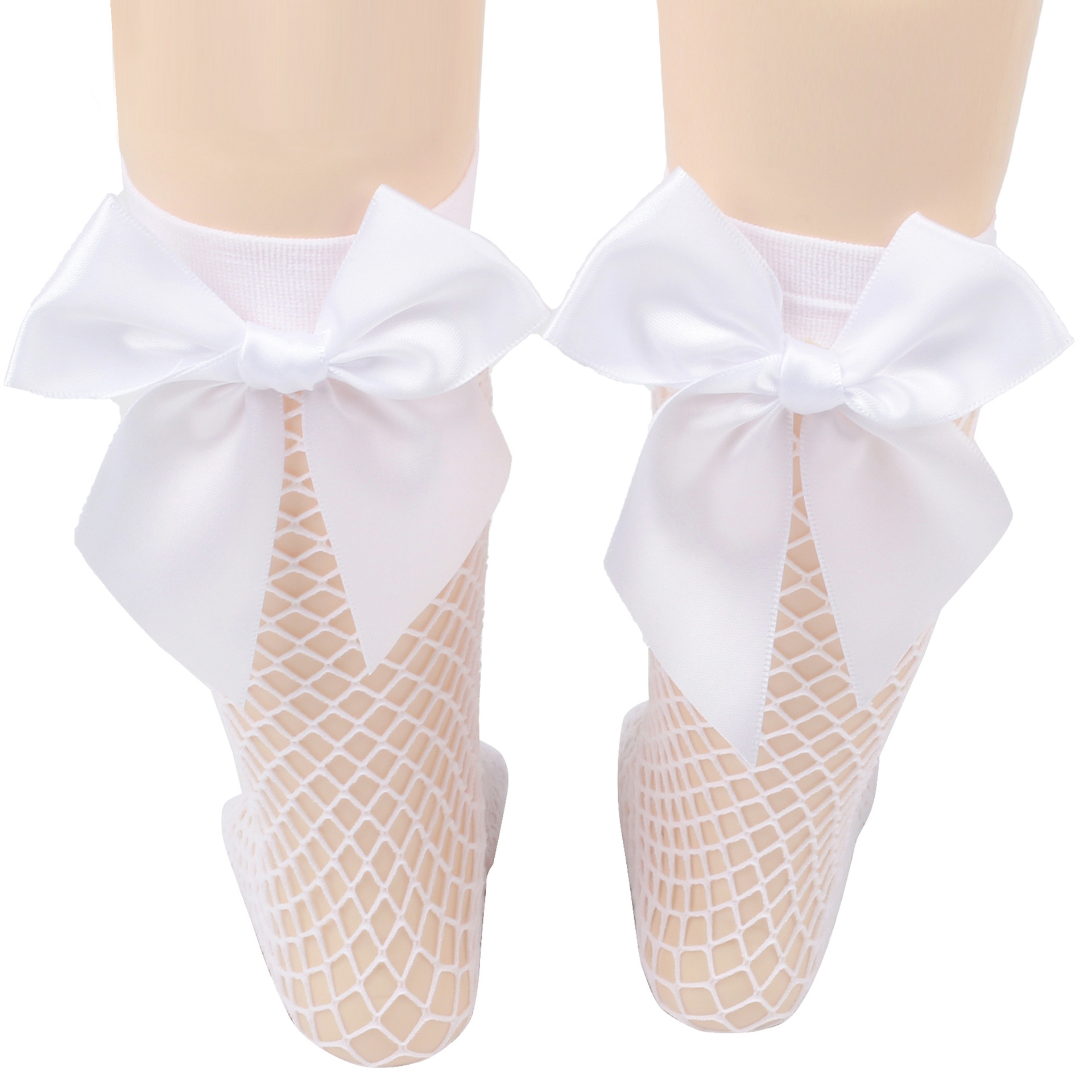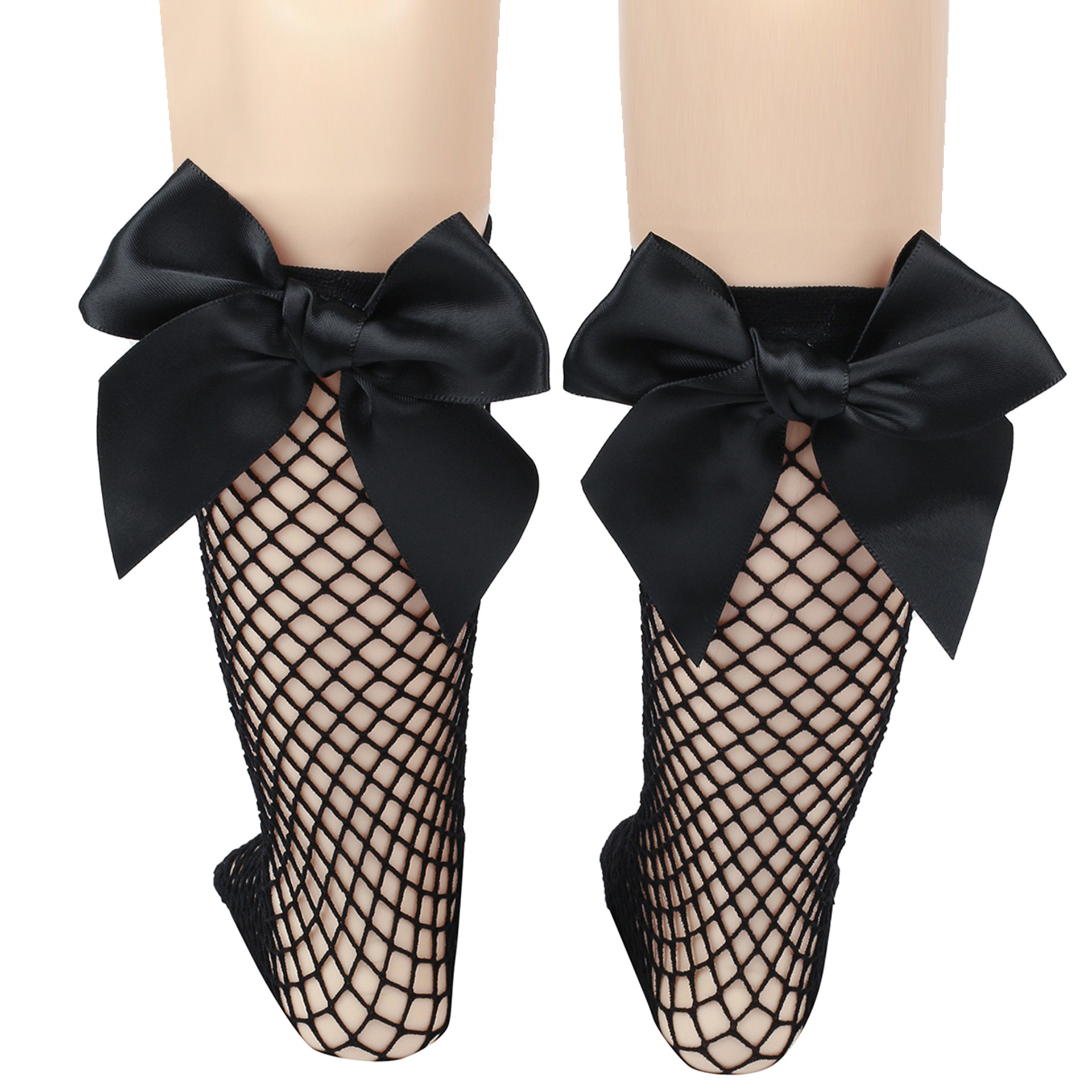 Girls' English Style Net Socks with Butterfly Knots, 70%-80% Cotton Material, Sweet and Elegant Style