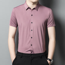 Men's Cotton Blend Short Sleeve Shirt, Korean Style, Breathable, Sweat-absorbent, Business Casual, Loose Fit, Solid Color