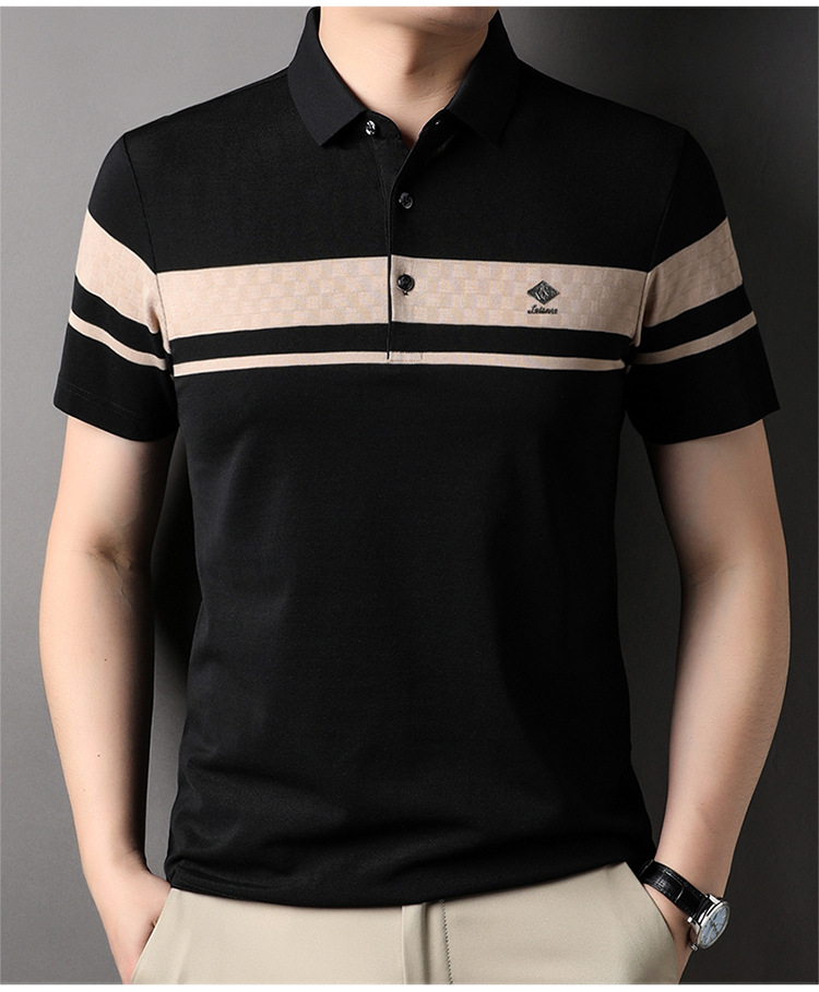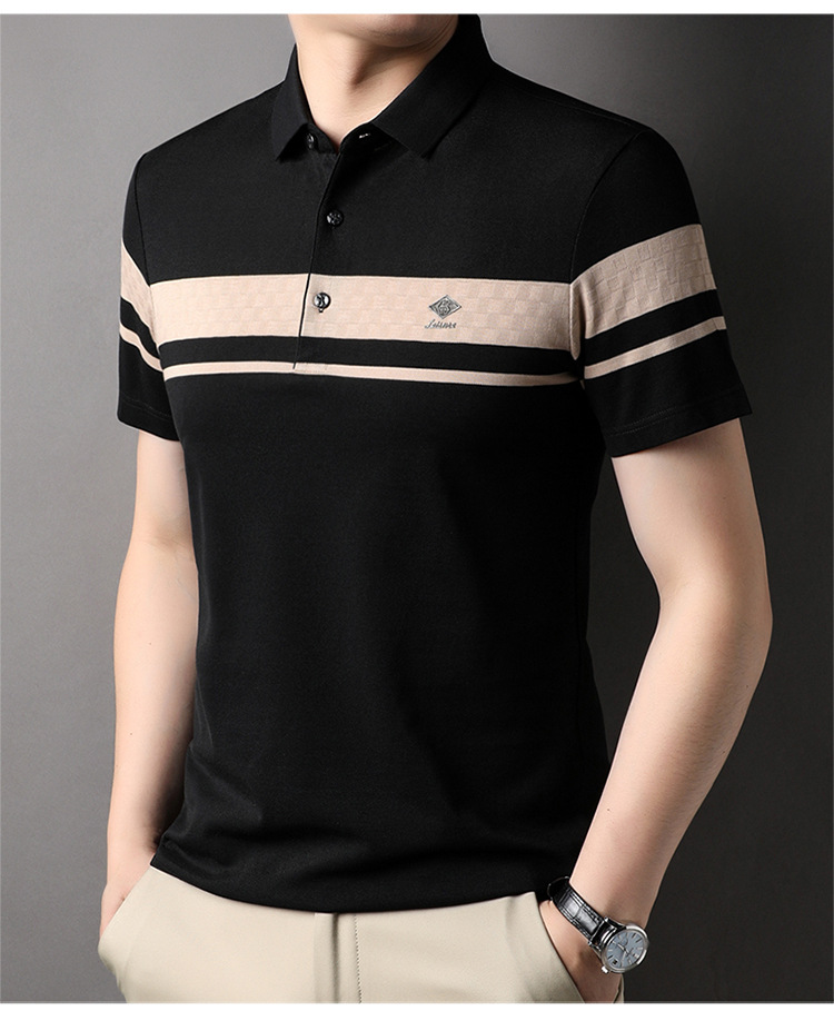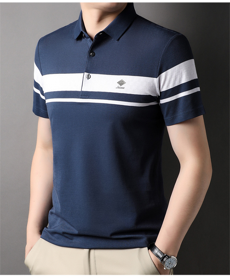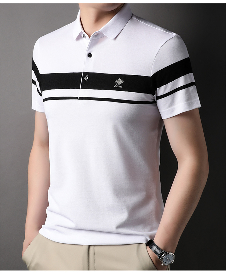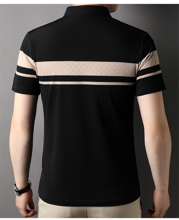 Manchi Striped Short Sleeve T-Shirt for Men, Cotton Fabric, Casual and Thin, Summer Polo Shirt