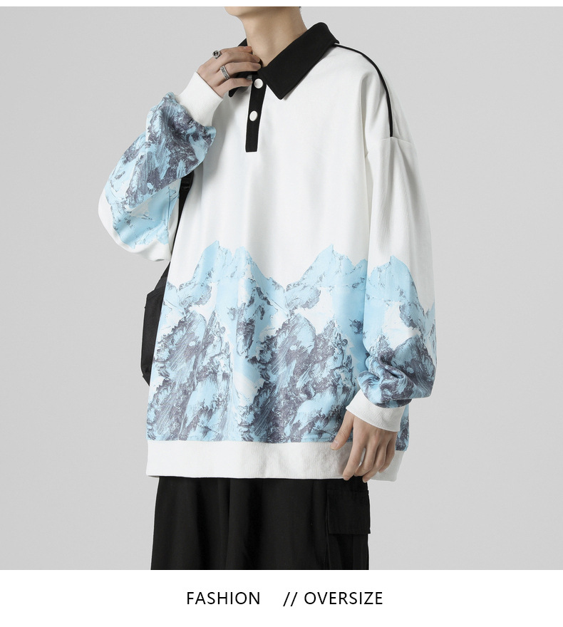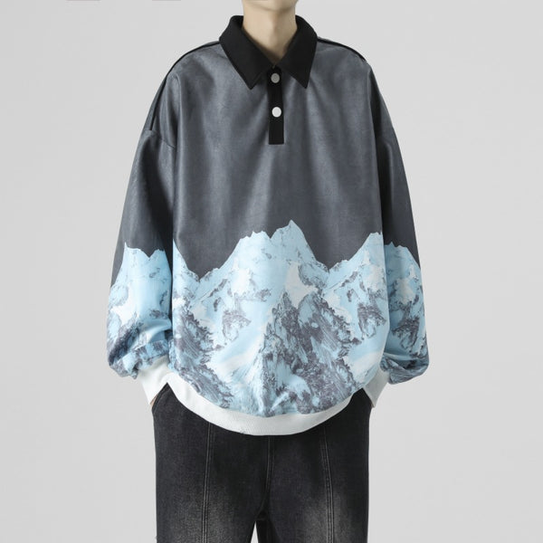 Stylish College Wind Sweatshirt with Mountain Print for Men and Women