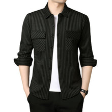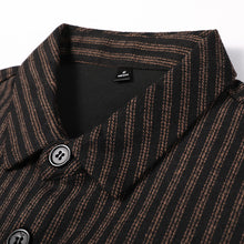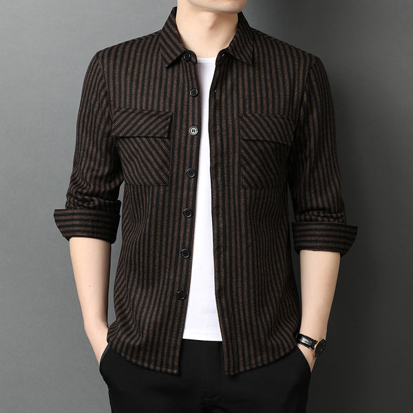 Men's Striped Long Sleeve Shirt, Polyester Blend, 30 Count, Basic Popular Style, Business Casual (35+ Years Old), Open Collar, All-match, Long Sleeve, Striped, Thickened, 0-3cm Error Range