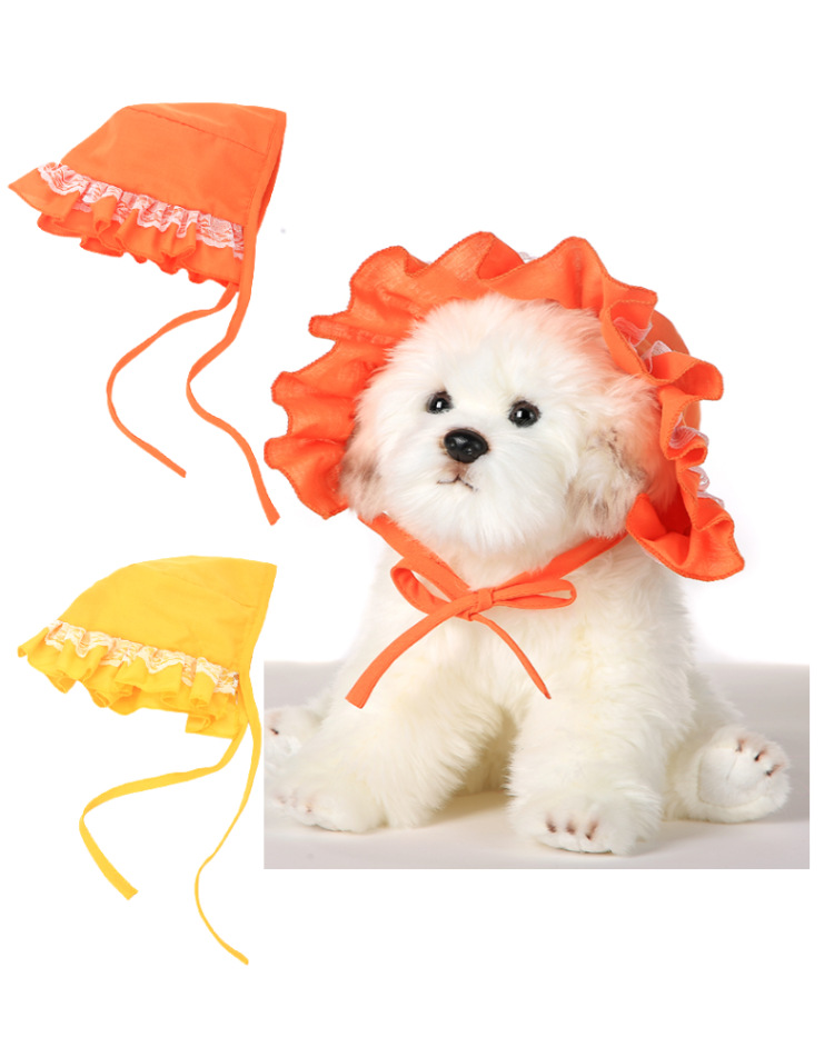 - ["Made of high-quality TC cloth, comfortable and breathable","Lace flower edge design, stylish and cute","Suitable for all kinds of pets, dogs and cats","Machine knitting craft, durable and washable","Perfect for summer, protect your pet from the sun"]