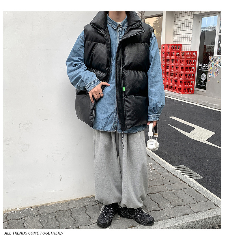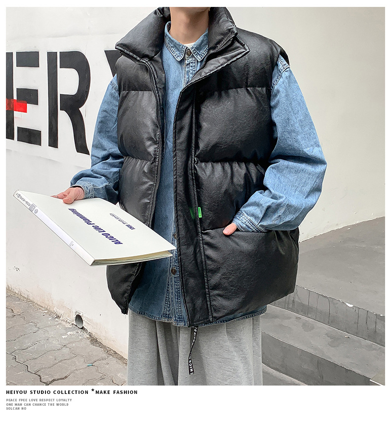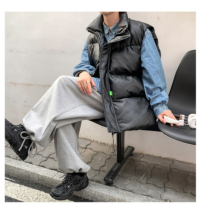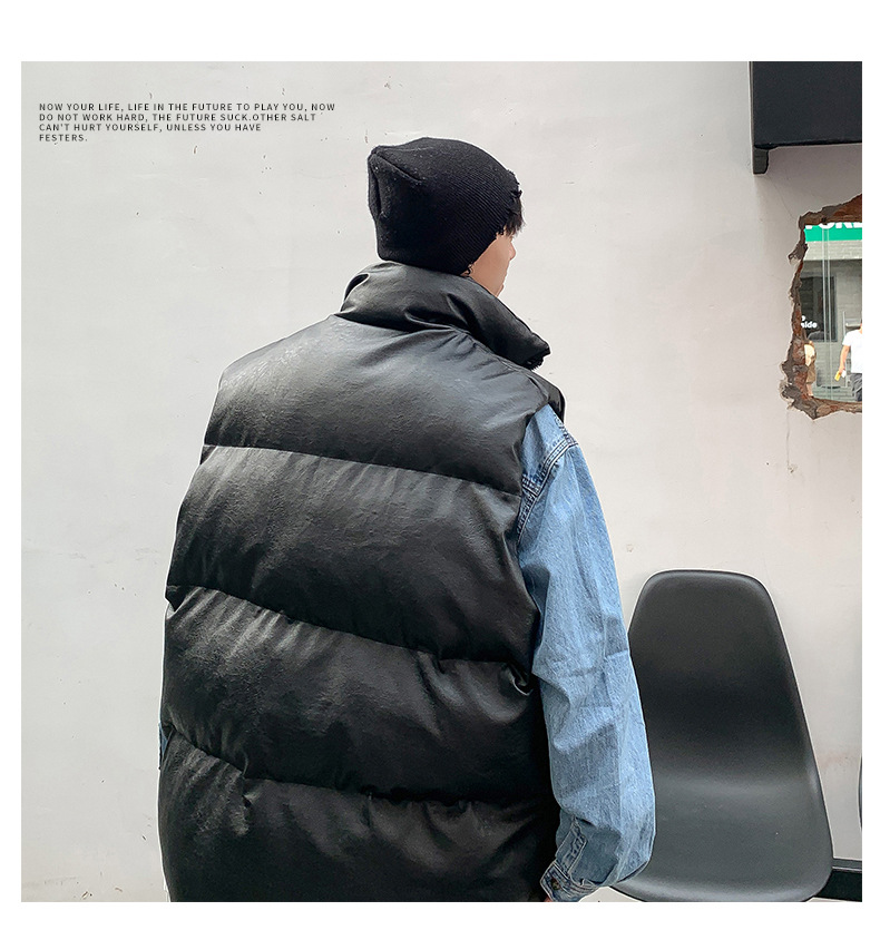Men's PU Leather Vest Winter New Fashion Trend Warm Thick Cotton Jacket Casual Wear Outerwear