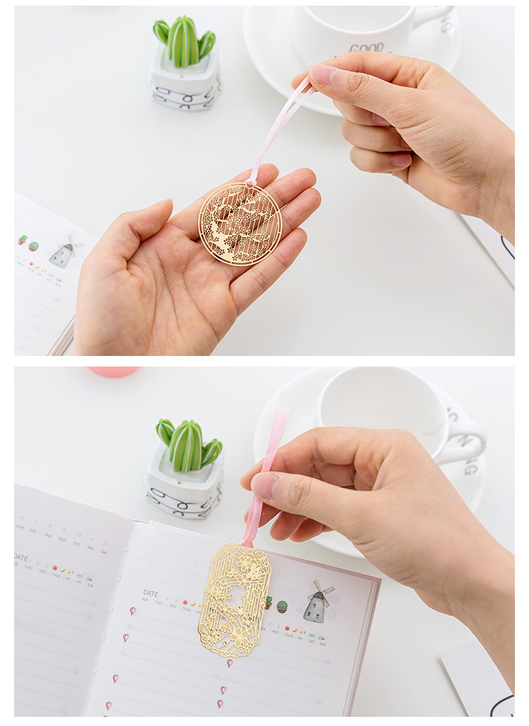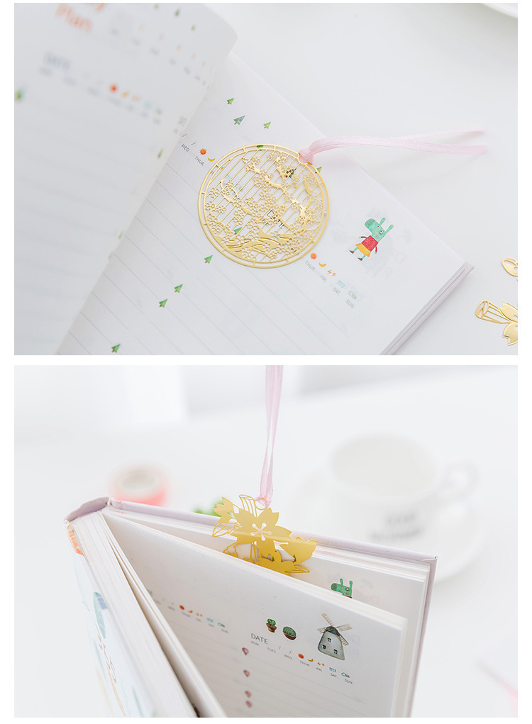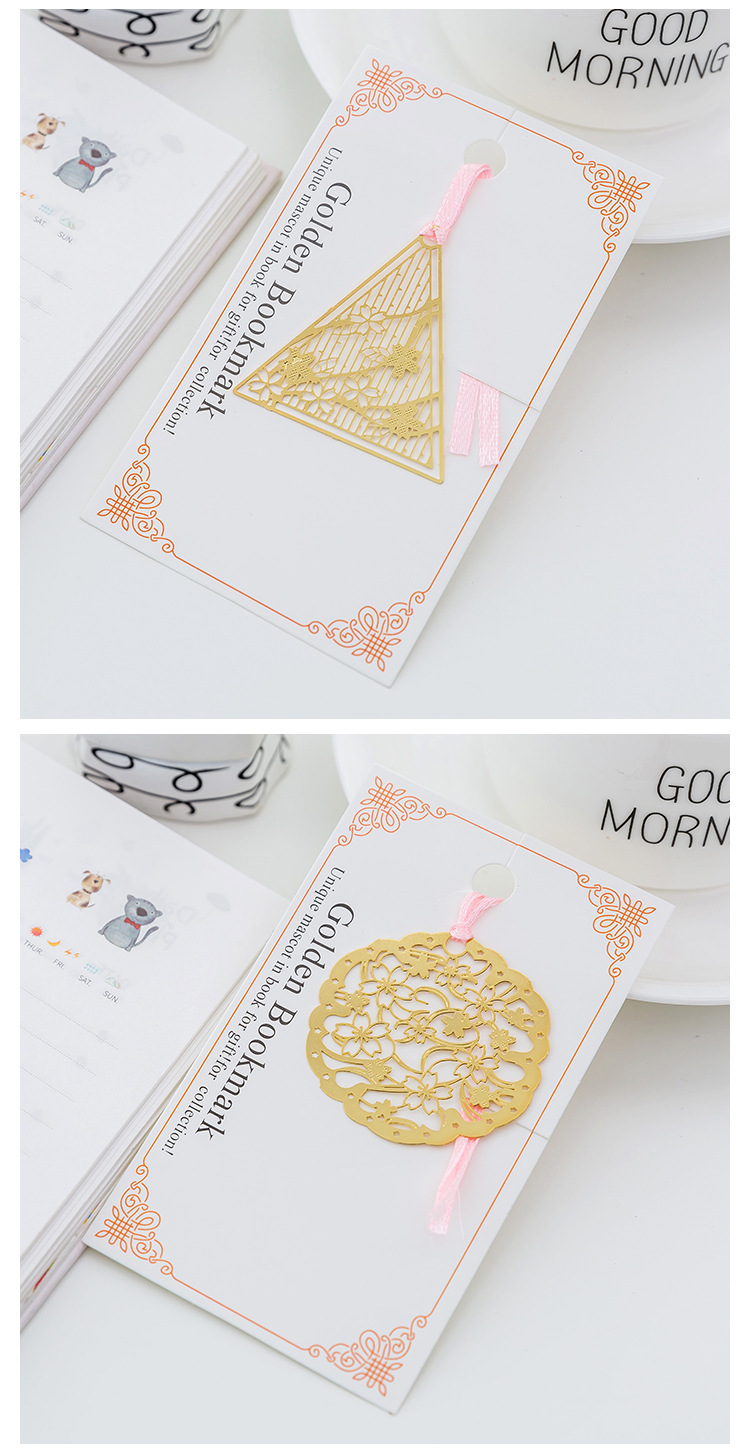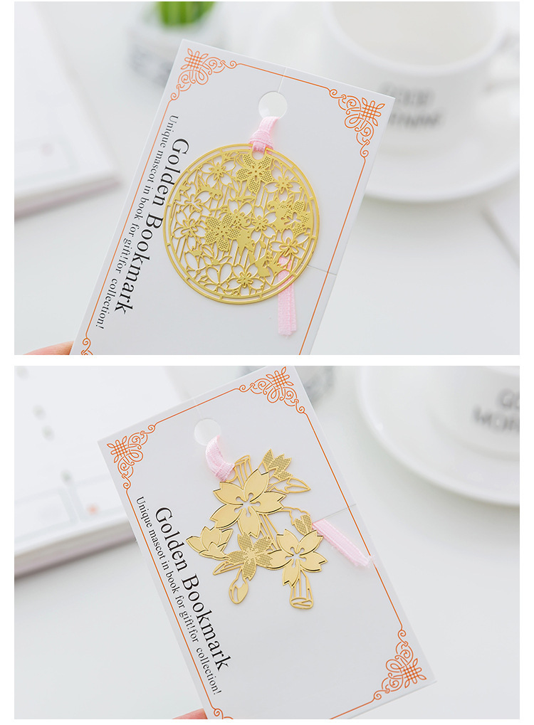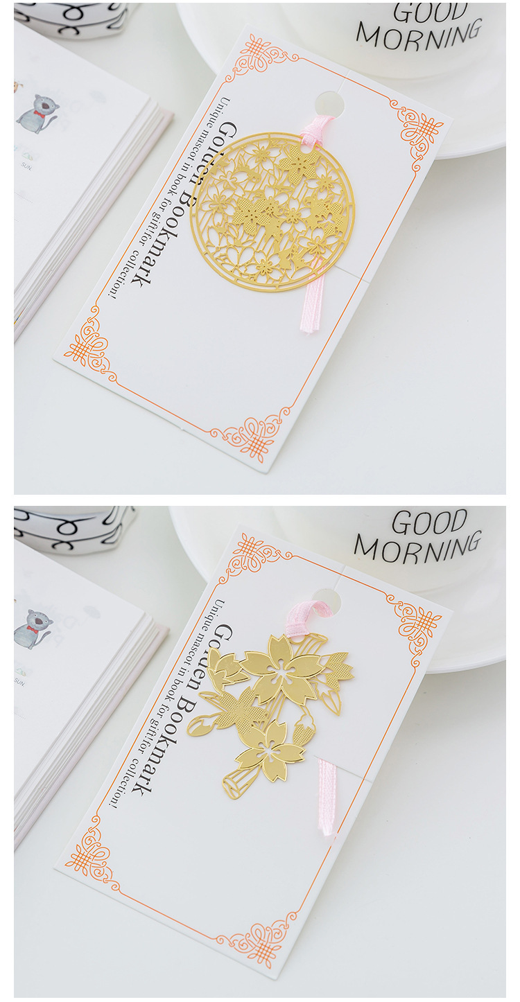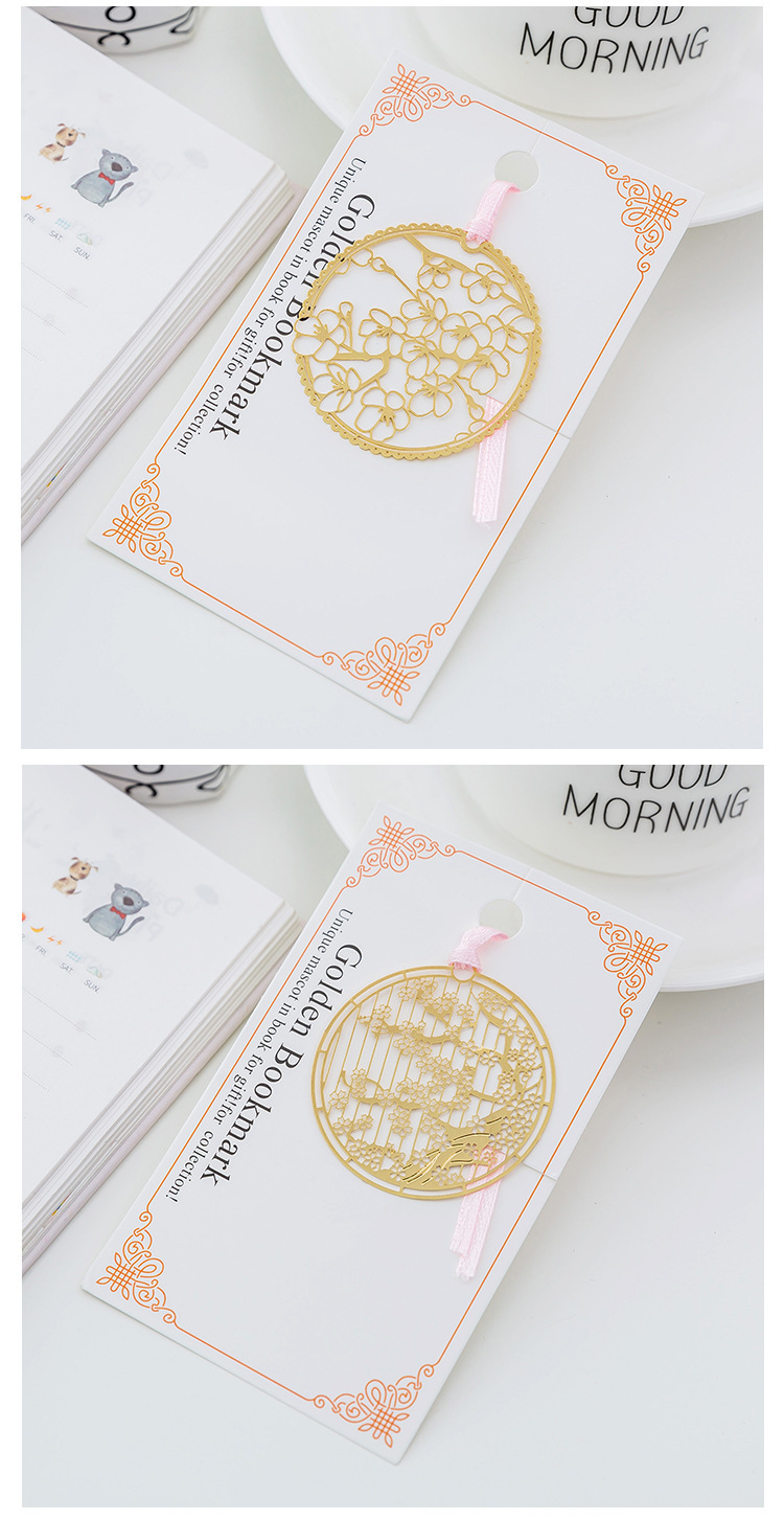 Chinese Style Hollow Metal Bookmark with Gold Plating and Floral Design