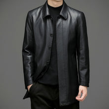 Men's Autumn and Winter New Casual Windbreaker Jacket with PU Leather, Mid-Length, Loose Fit and No Lining