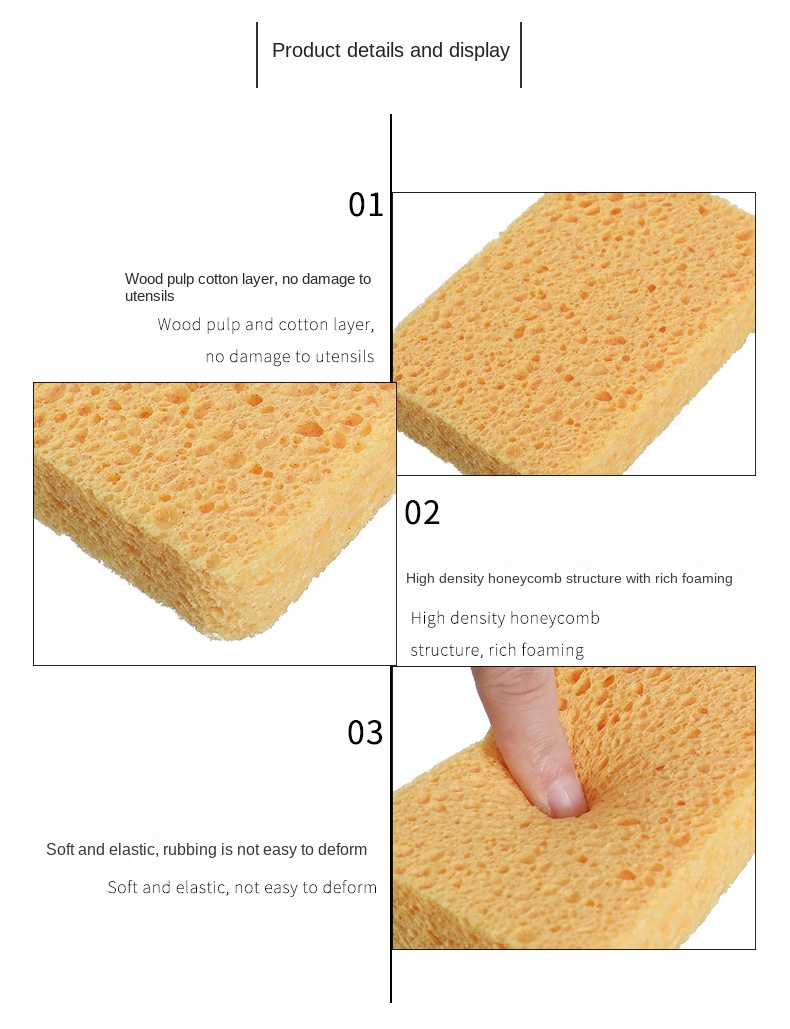 - ["Made of high quality sea sponge and cotton cloth","Absorbs water and dirt quickly","Easy to clean kitchenware","Durable and long lasting","Compact size for easy storage"]