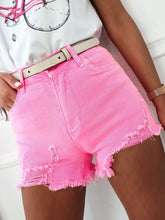Women's Stylish Summer New Solid Color Denim Ripped High Waist Shorts 7831255
