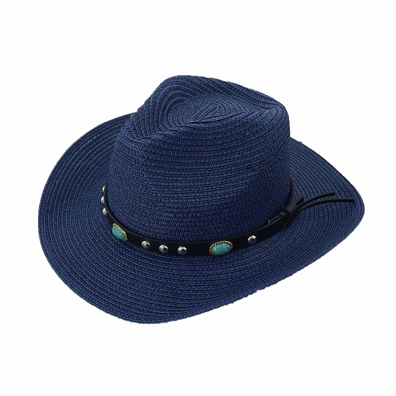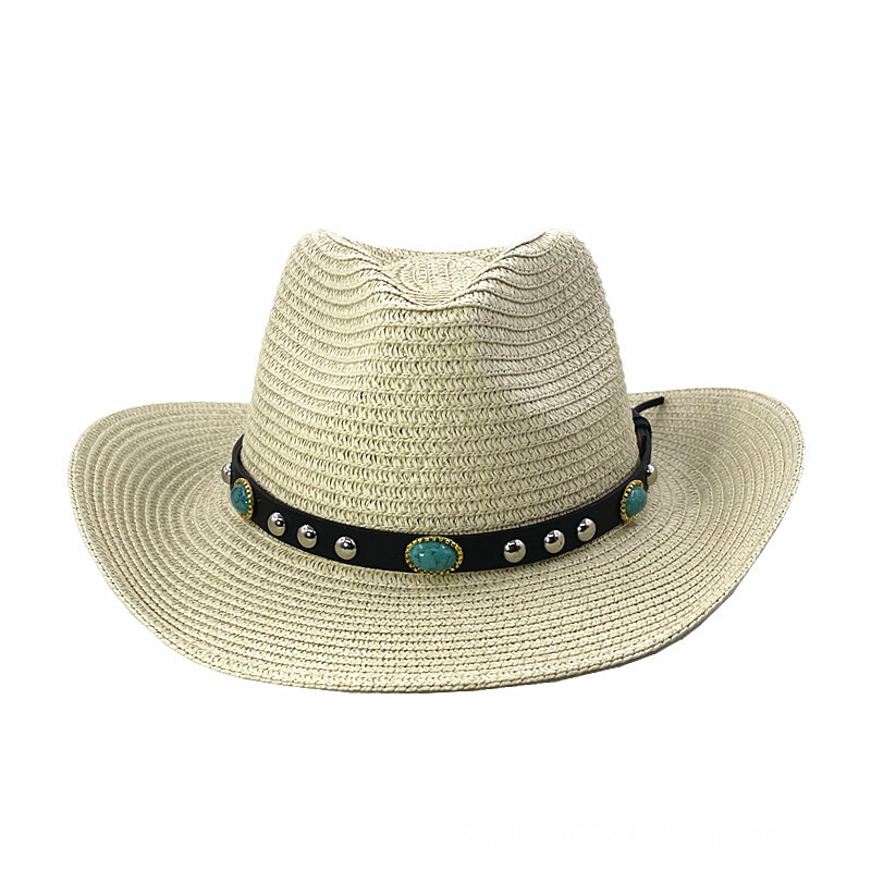 Panama Straw Hat with Gemstones for Men and Women, 91%-99% Cotton Fabric, Sun Protection, Windproof, Anti-Aging