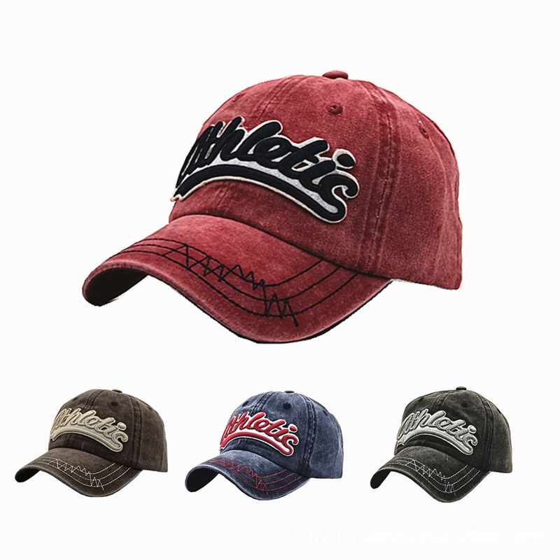Men's Washed Baseball Cap with Duckbill Style, Embroidered Lettering, Sun Protection, and Windproof
