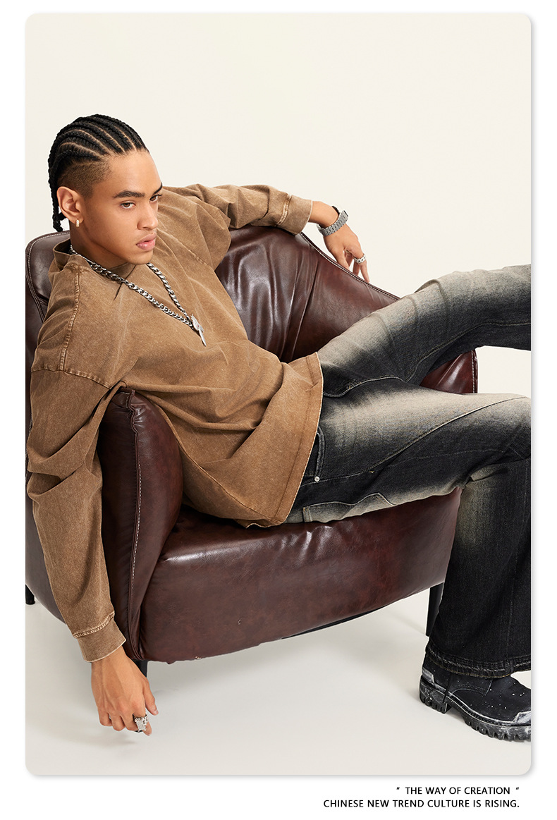 - ["Made from 100% cotton for comfort and breathability","Features a loose fit for a relaxed, comfortable feel","Water washed for a vintage look","American style for a youthful look","Long sleeve for a stylish look"]