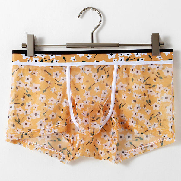 Men's Breathable Ice Silk Printed Net Gauze Separate Comfort Elephant Trunk Briefs