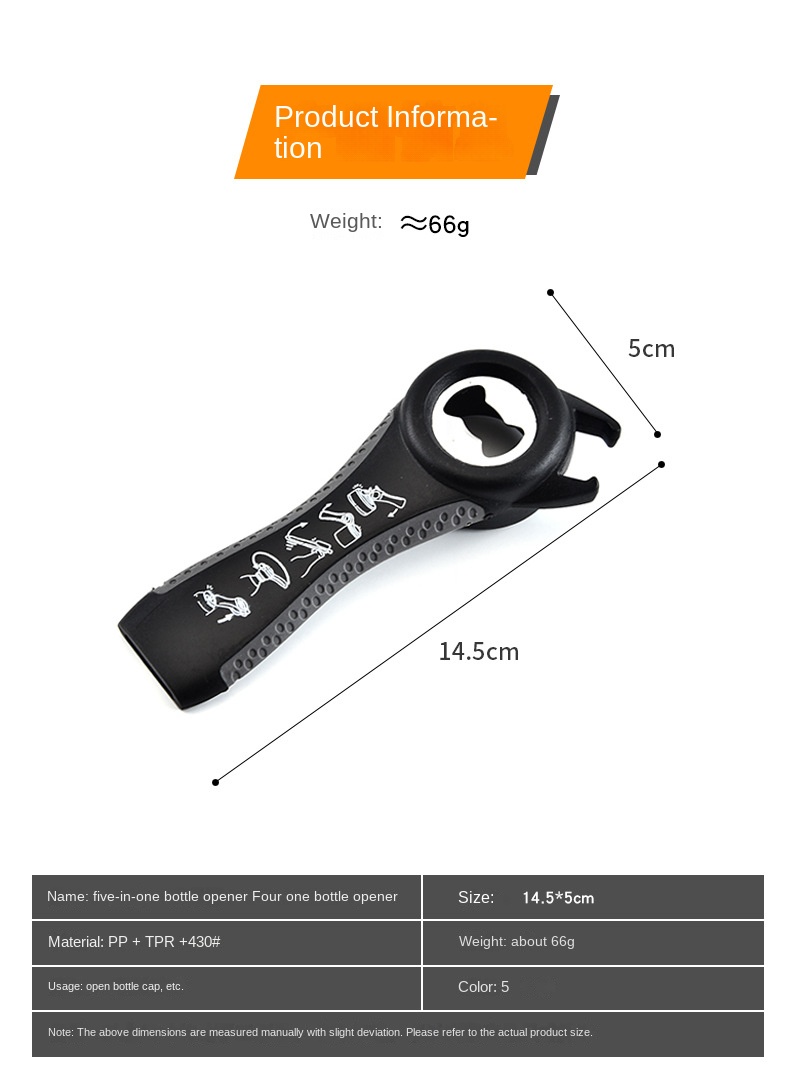 5-in-1 Creative Bottle Opener, Multi-Functional Can Opener for Kitchen, Direct Selling