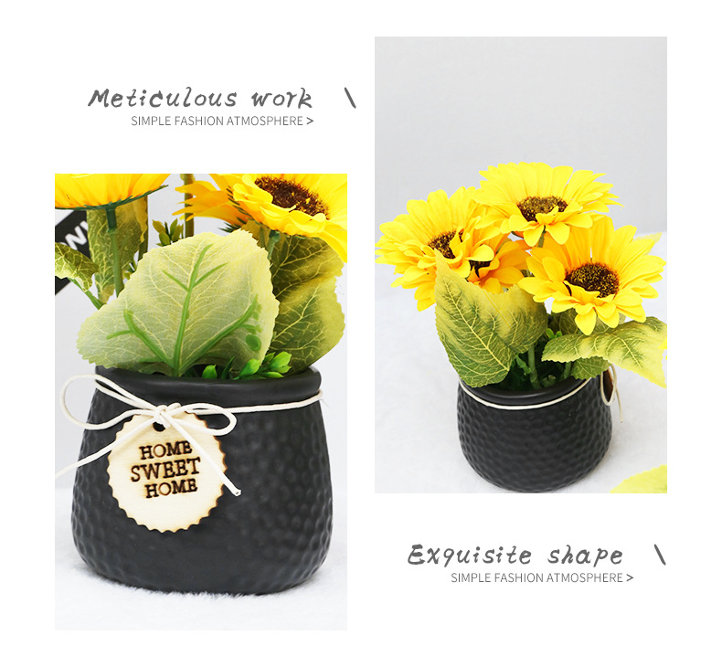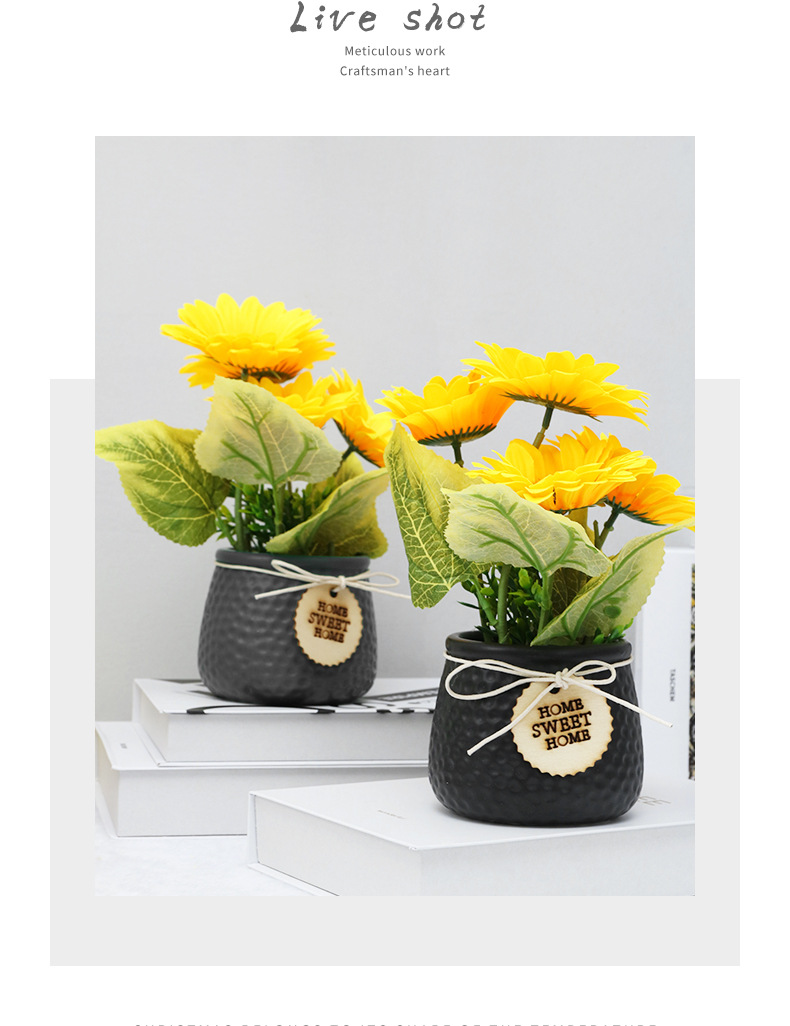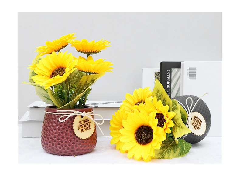 Home Décor - Artificial Sunflower Ceramic Potted Plant for Living Room Wedding Decoration